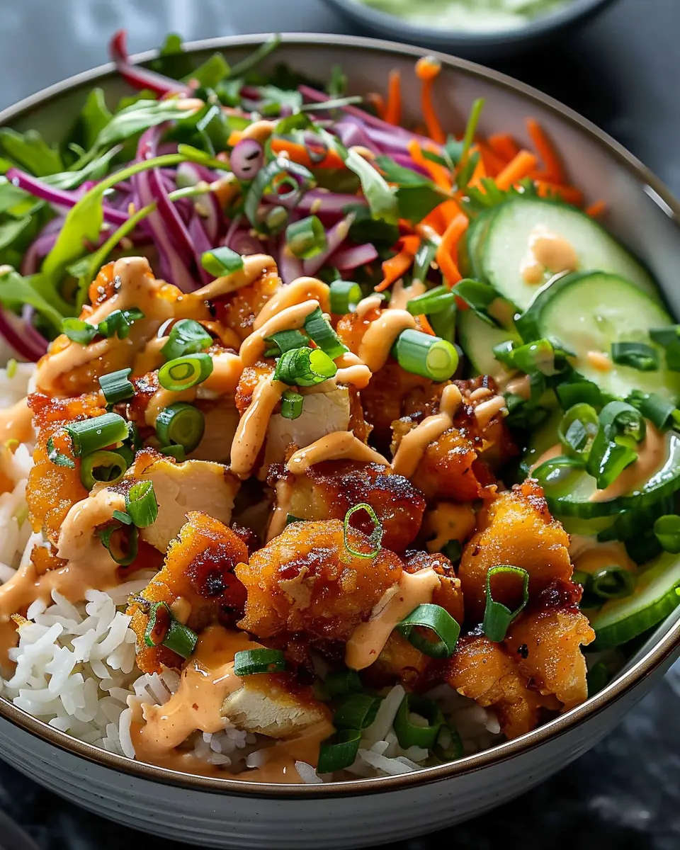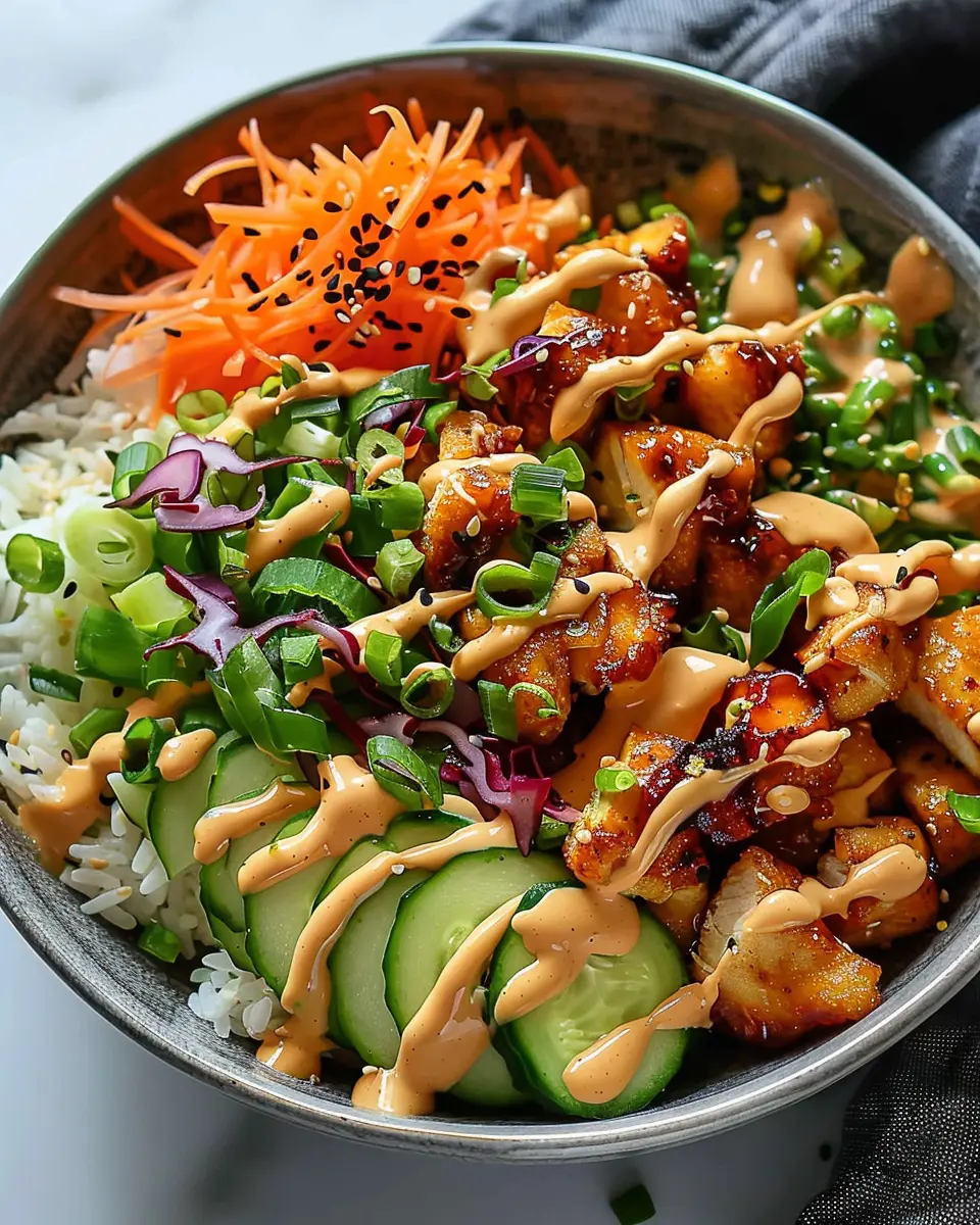 Whether you’re a cooking novice or a seasoned chef, this bowl is designed to fit seamlessly into your lifestyle. So, why not give the Bang Bang Chicken Bowl a try? Your taste buds and your schedule will thank you. If you’re ready to dive into this delicious adventure, keep reading for the full recipe and tips to make it your own!