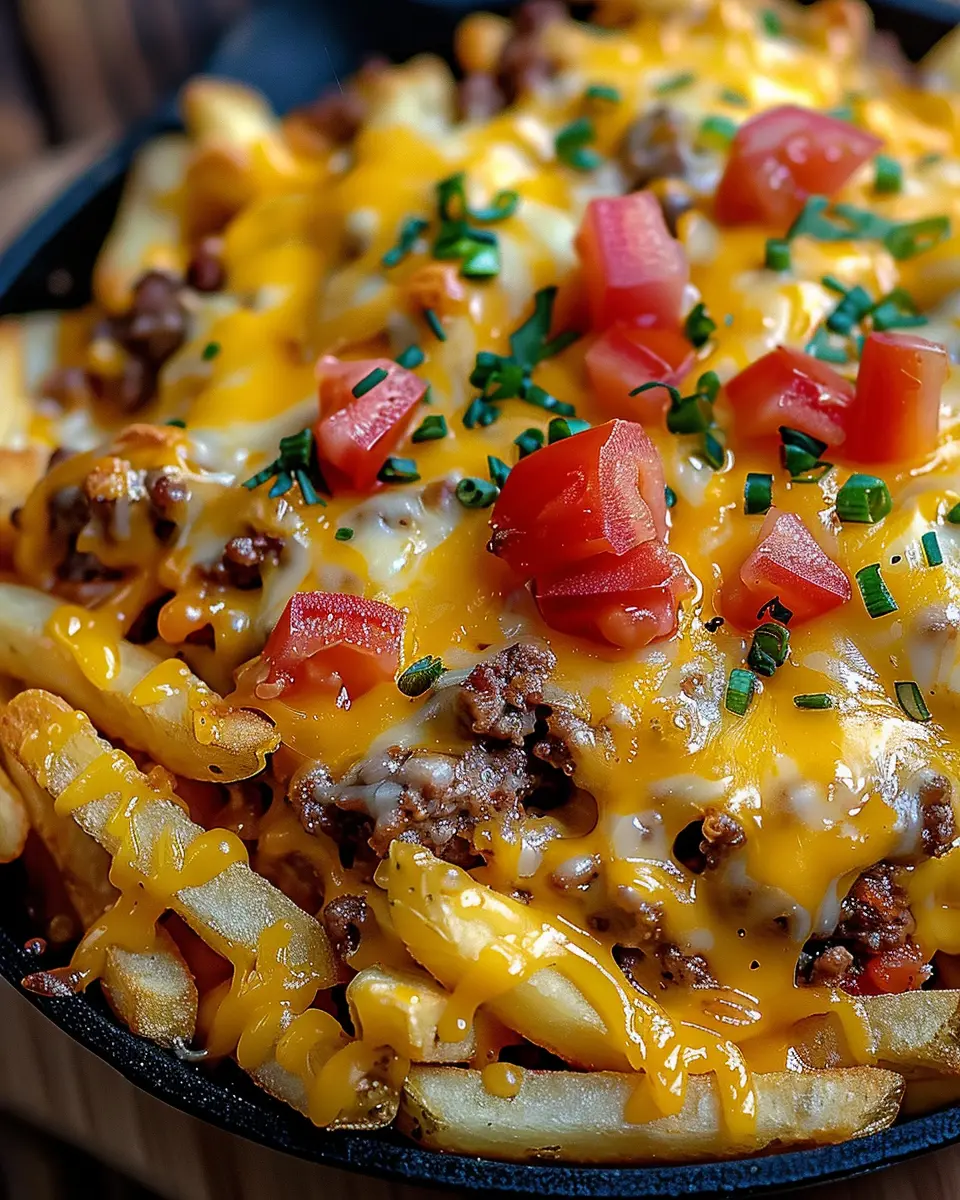 A delicious and indulgent casserole combining all the flavors of a cheeseburger with crispy french fries.