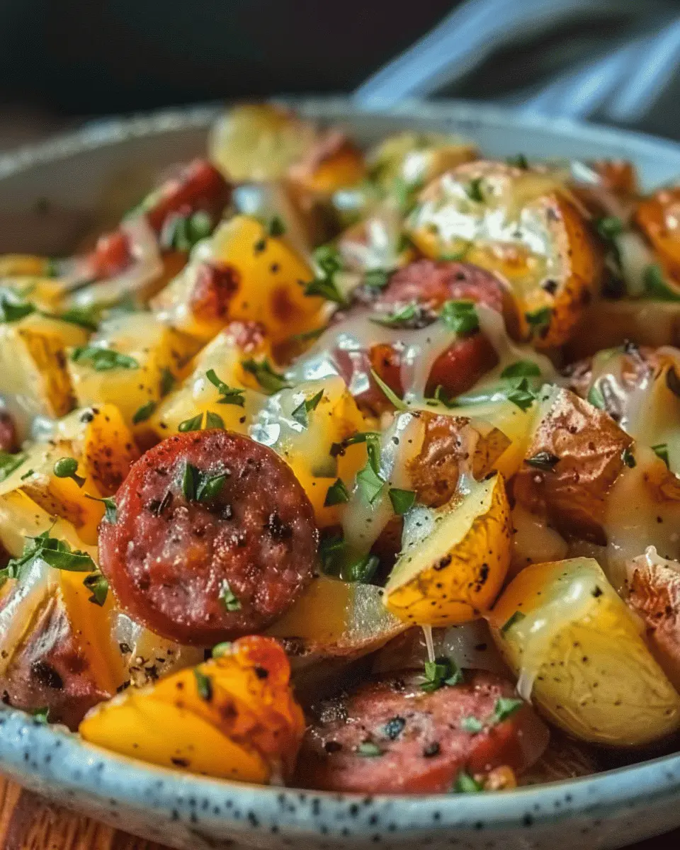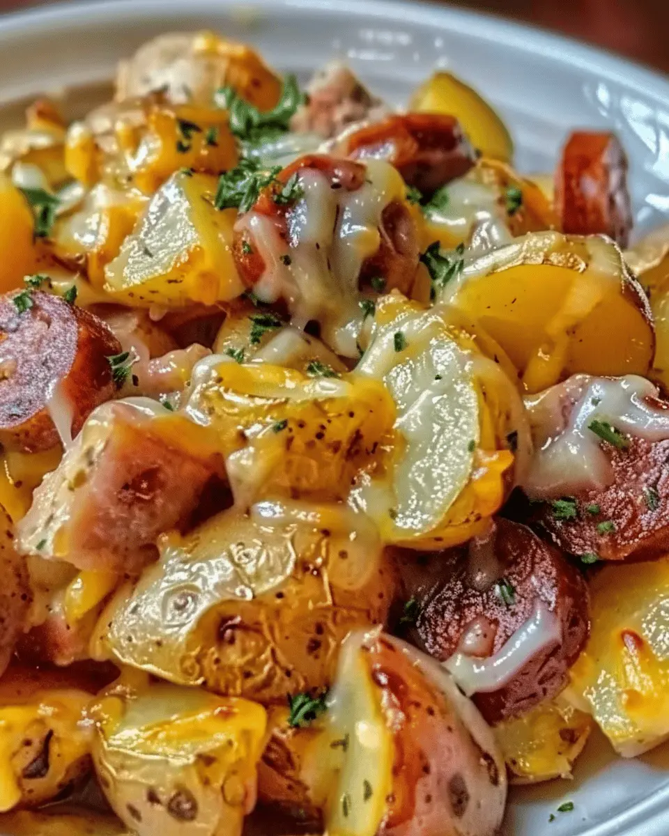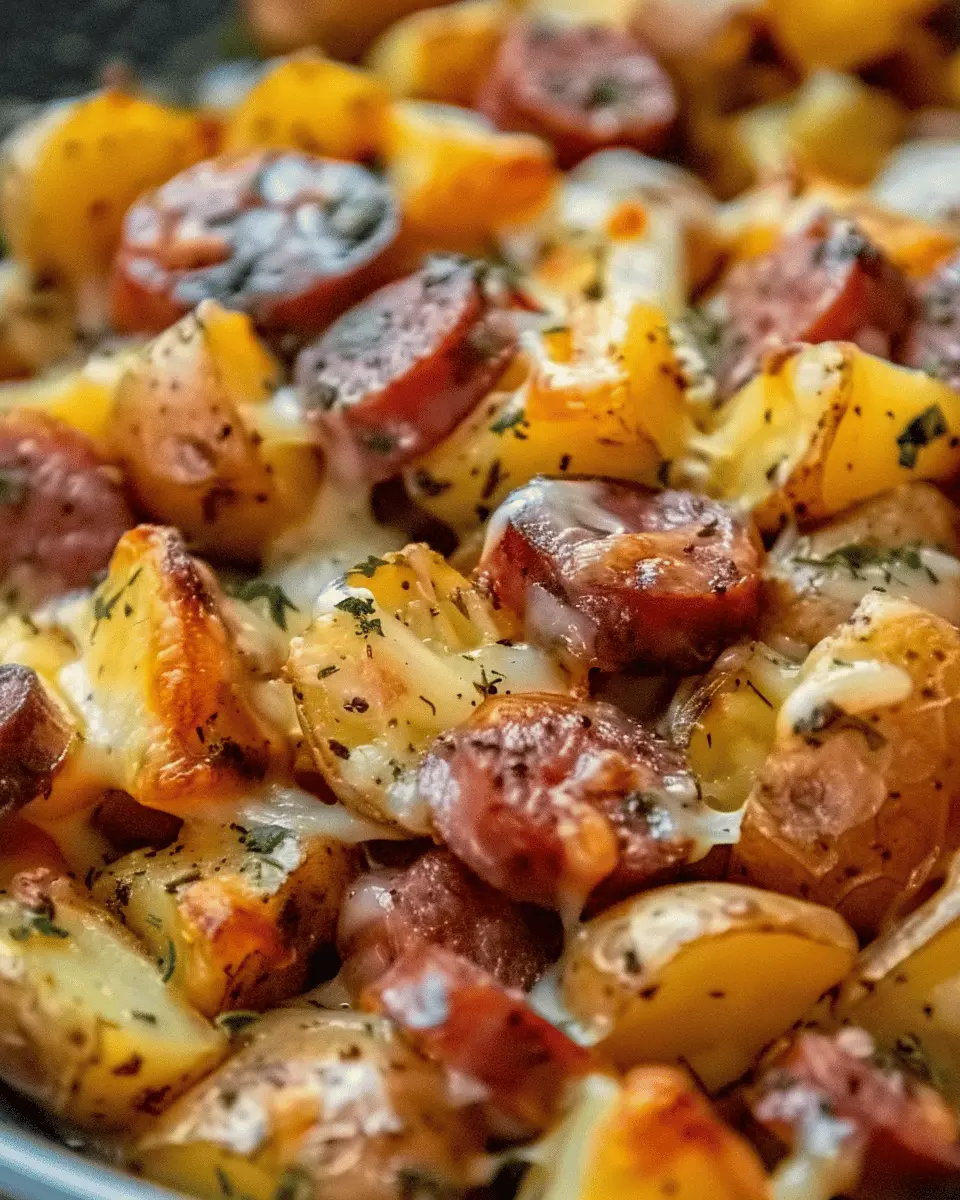 Keywords: Cheesy Ranch Potatoes, Smoked Sausage, Comfort Dish, Easy Dinner