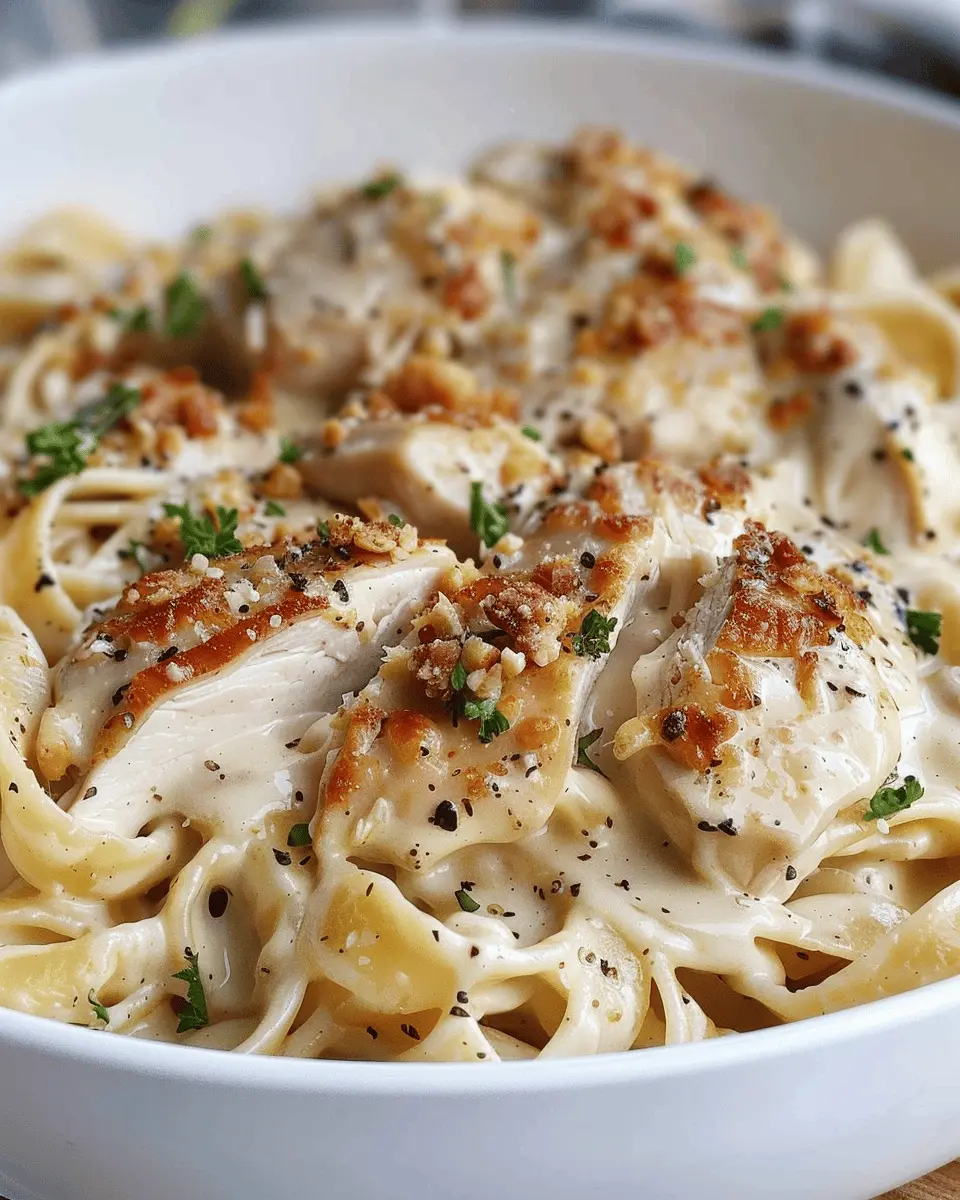 - Incorporate chicken: Add the sliced chicken on top and gently mix. The pasta should be coated in that luxurious sauce, with chicken pieces nestled throughout.