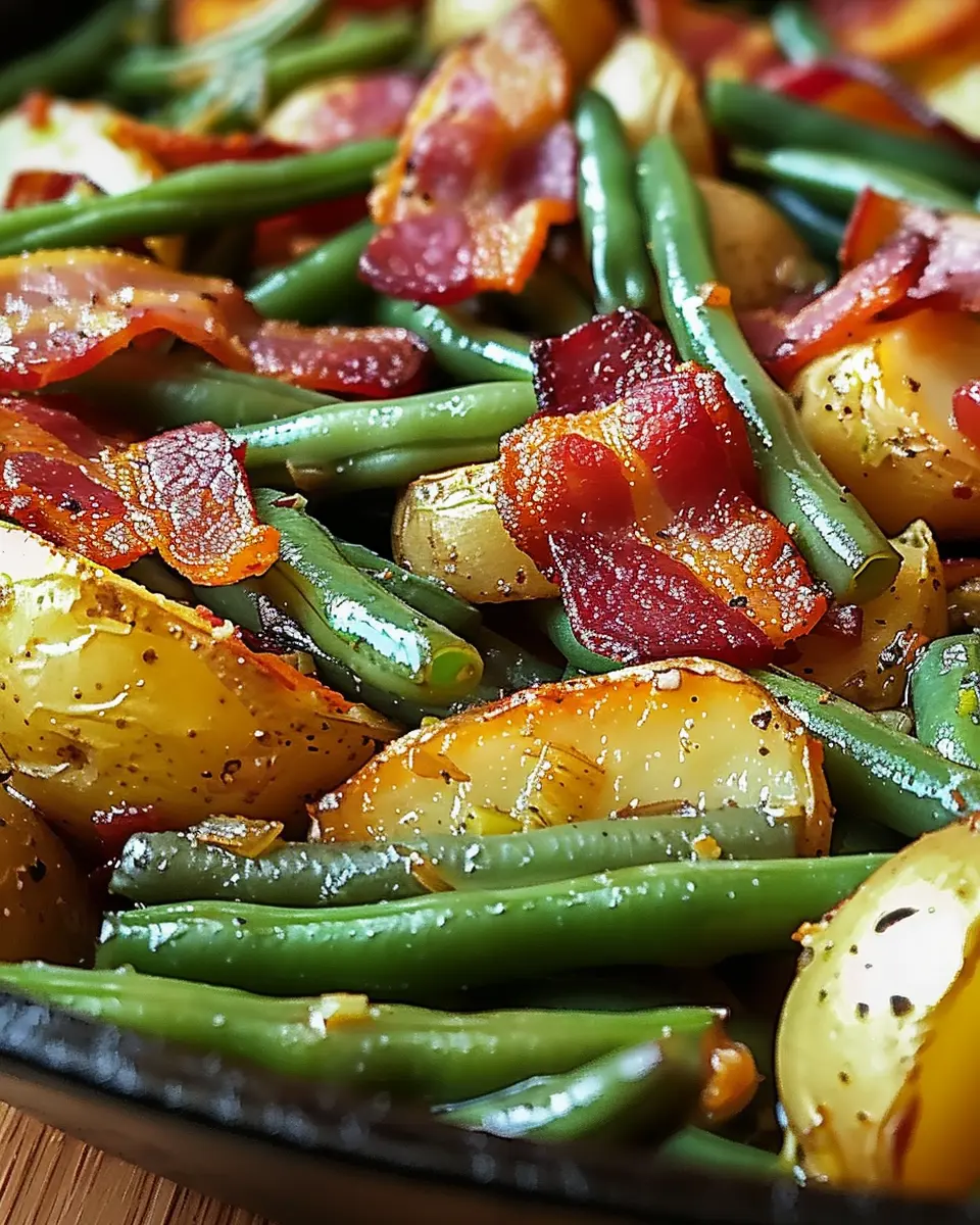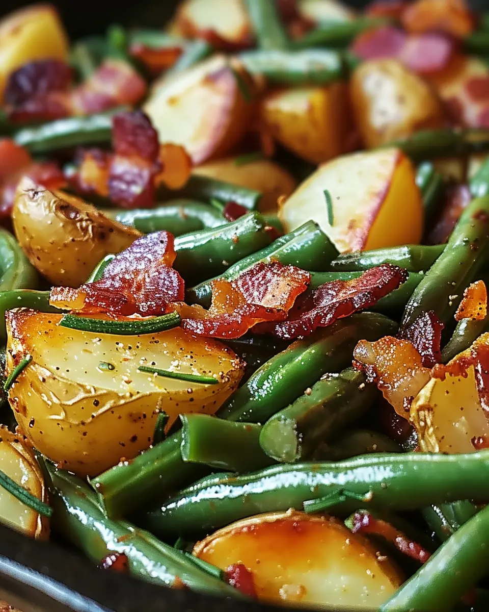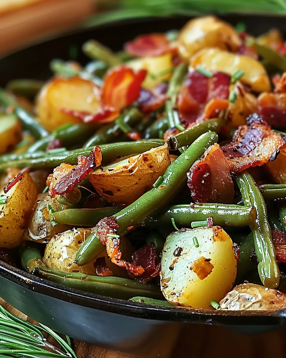 PrintCountry Ranch Green Beans and Potatoes with Savory Turkey Bacon