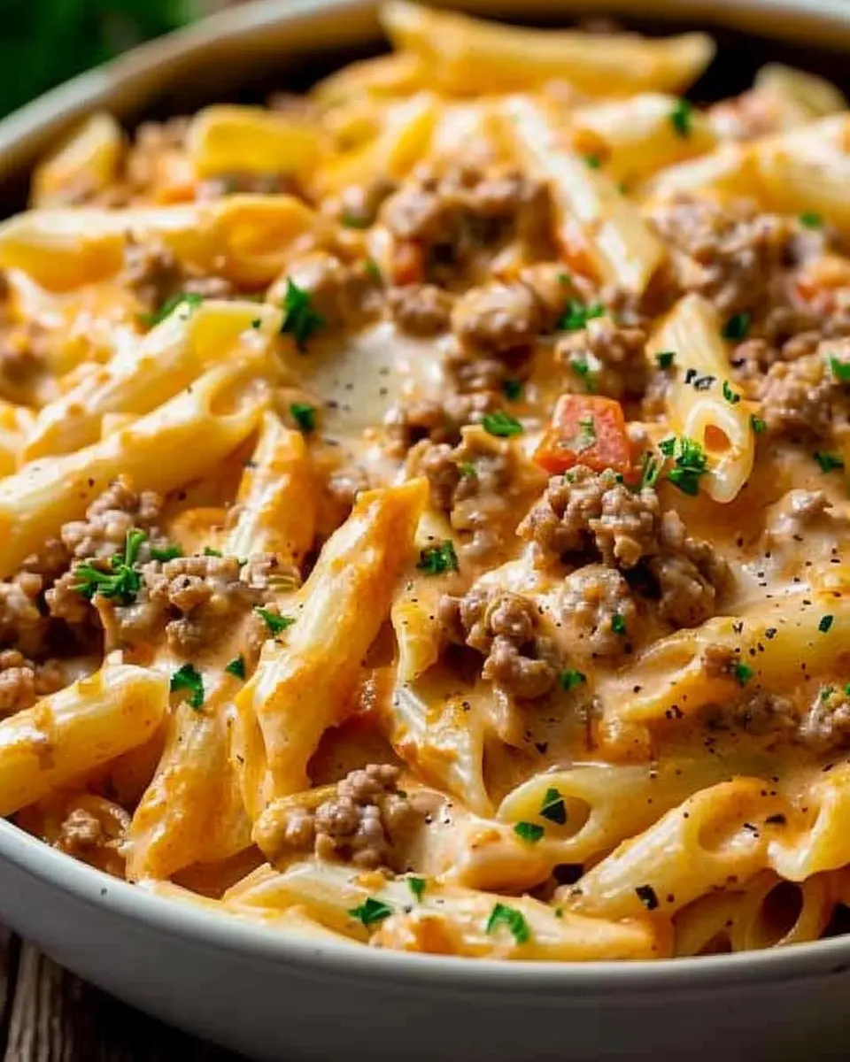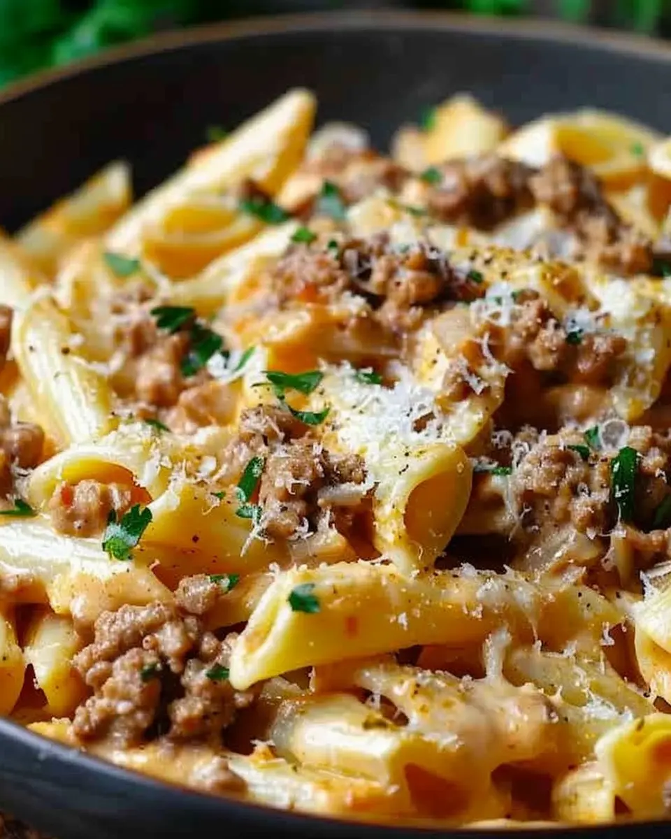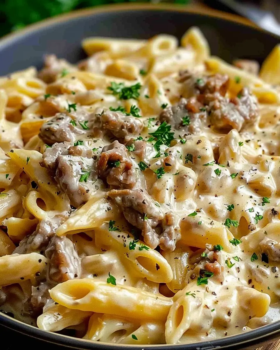 This creamy beef pasta is the perfect indulgent comfort food, combining rich flavors and hearty ingredients for a satisfying meal.
