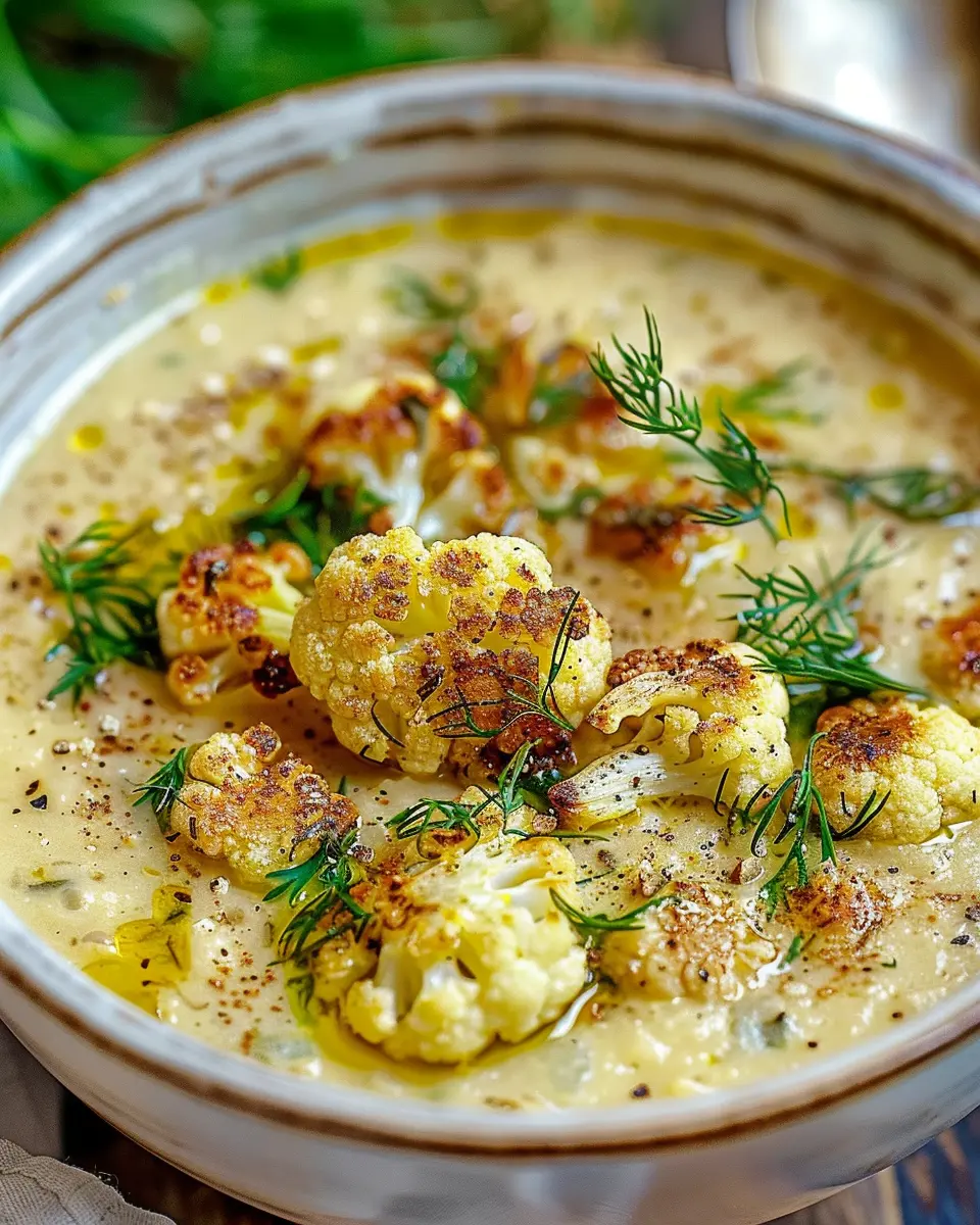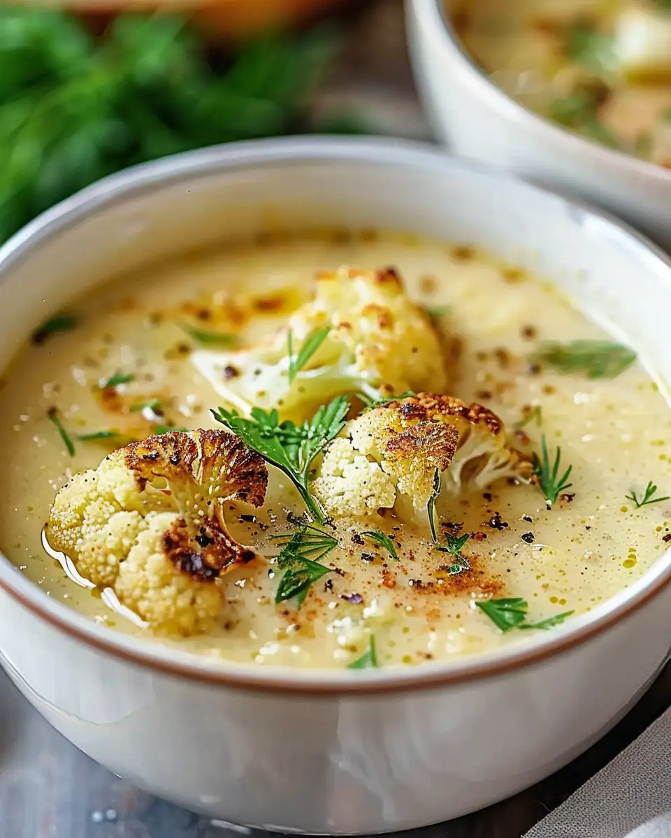 PrintCreamy Roasted Cauliflower Soup with Mediterranean Flair: Easy & Delicious