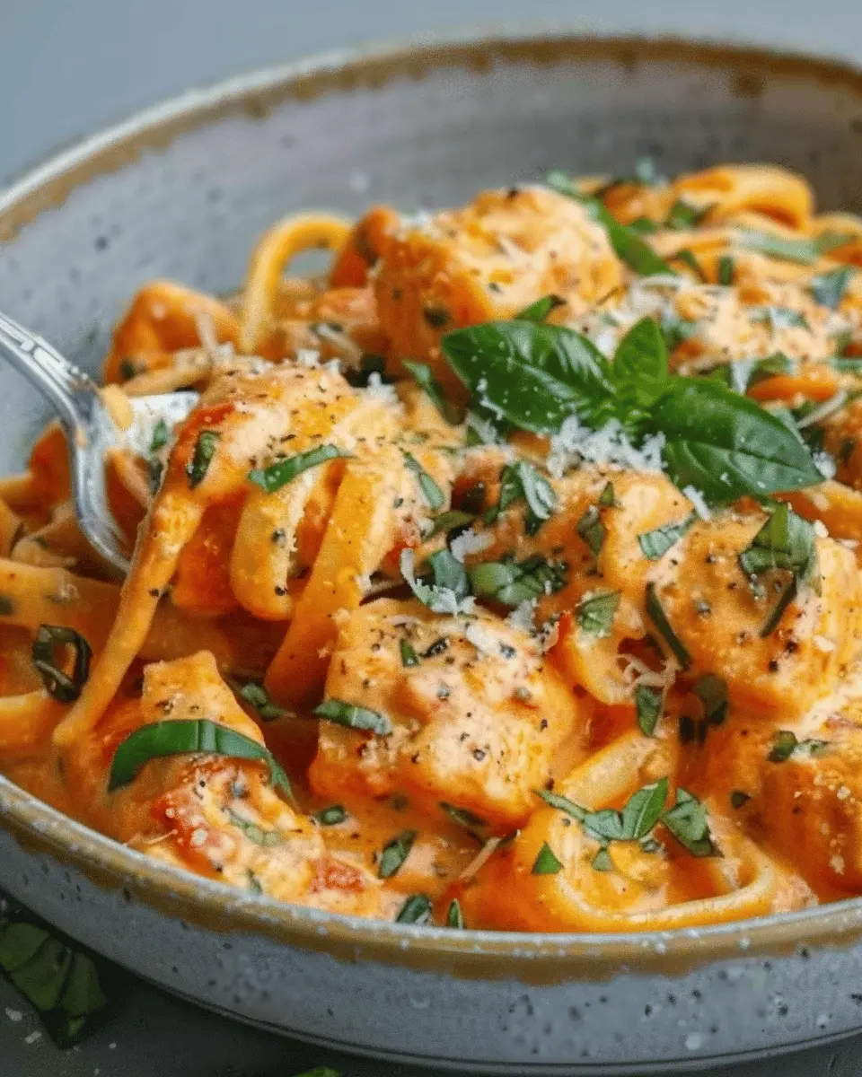 A delicious and quick pasta dish featuring creamy tomatoes and crispy turkey bacon, perfect for a weeknight meal.