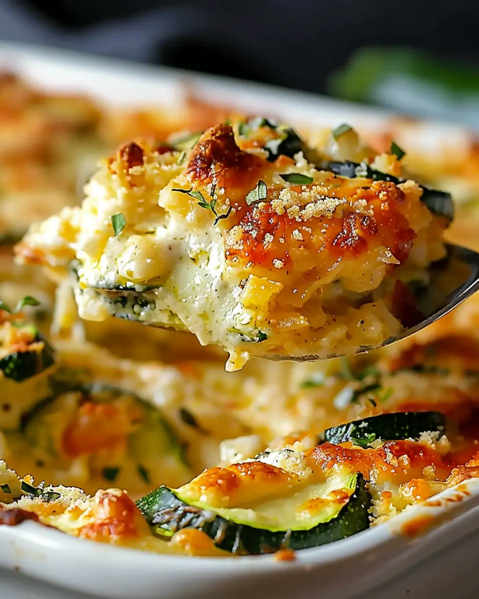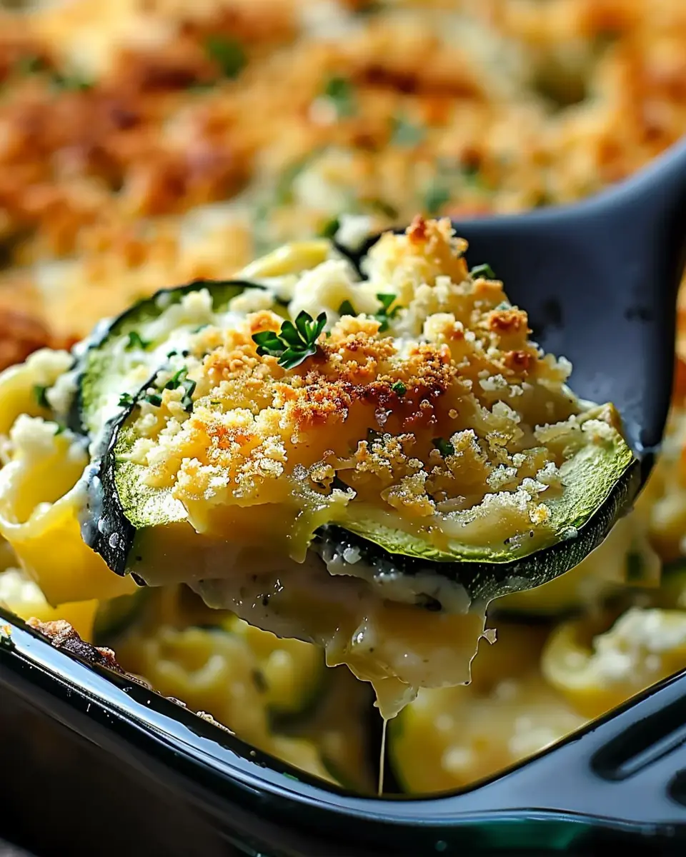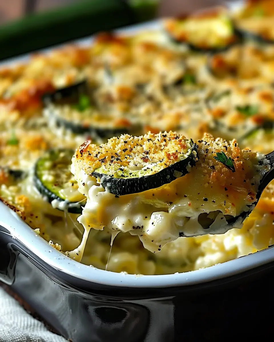 What makes this casserole truly special? A few things! First, its creamy texture combined with the crispiness of baked zucchini elevates each bite to a new level of deliciousness. The casserole is layered with gooey cheese, a hint of garlic, and topped with crunchy breadcrumbs, making it a feast for your taste buds.