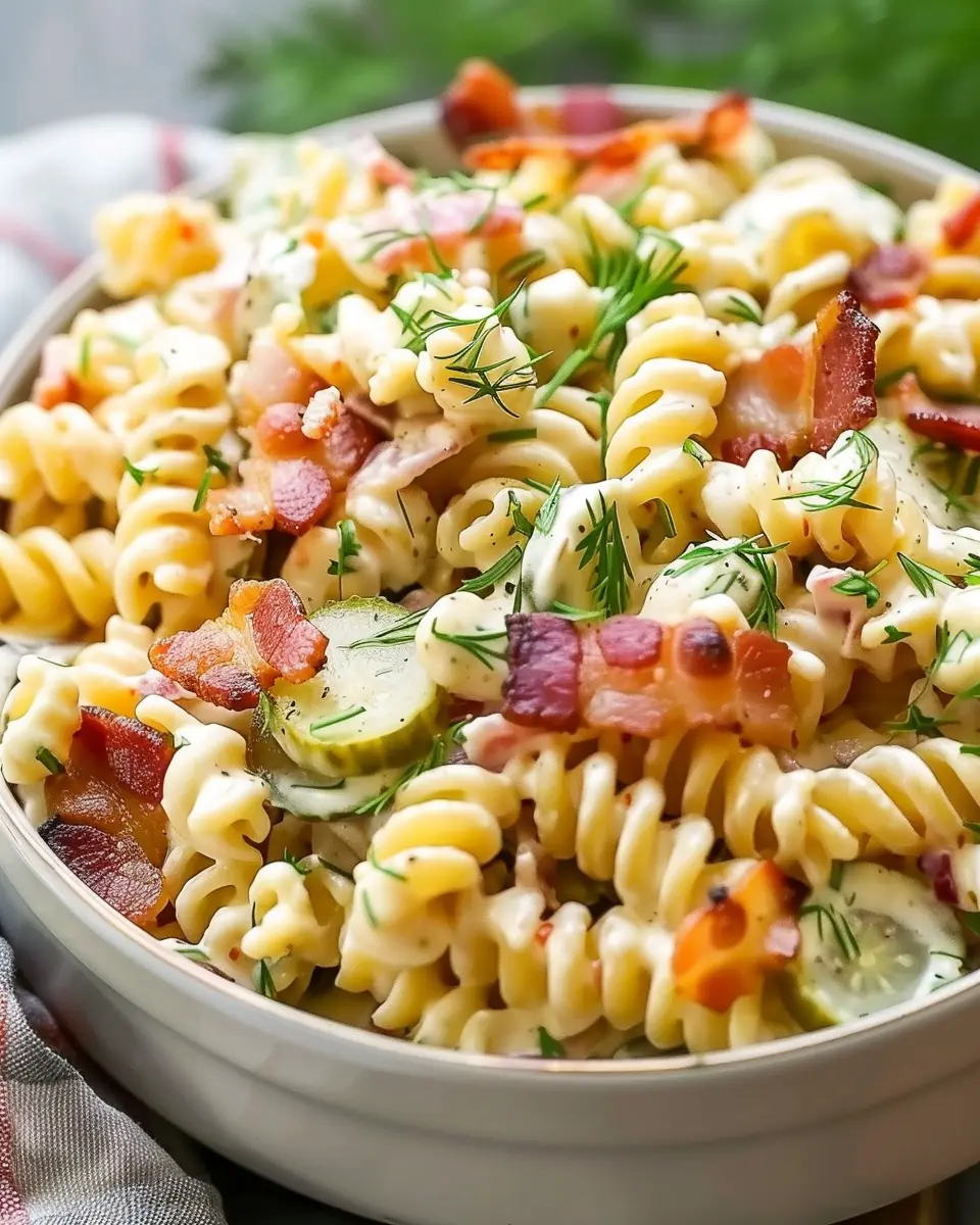 Introduction to Dill Pickle Turkey Bacon Pasta Salad
