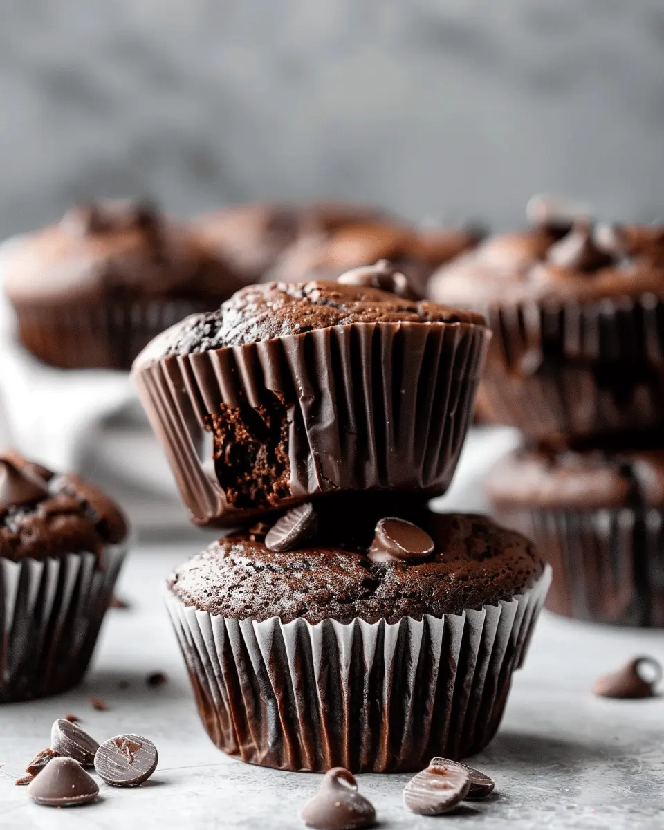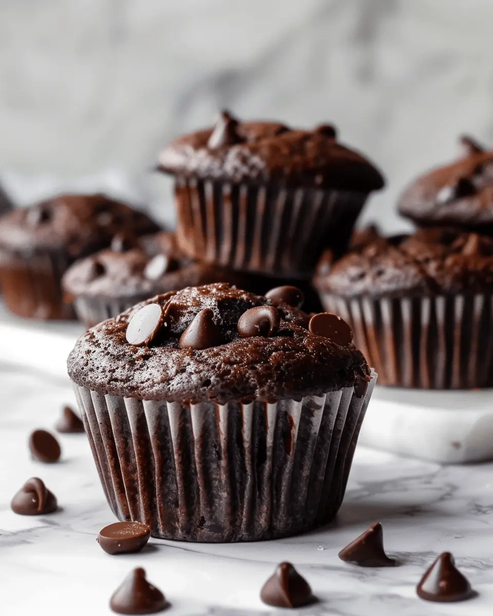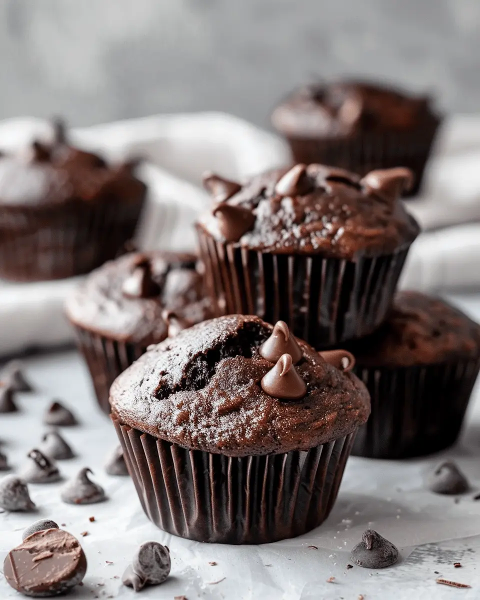 Indulge in the rich and moist flavors of Double Chocolate Banana Muffins, perfect for any chocolate lover.