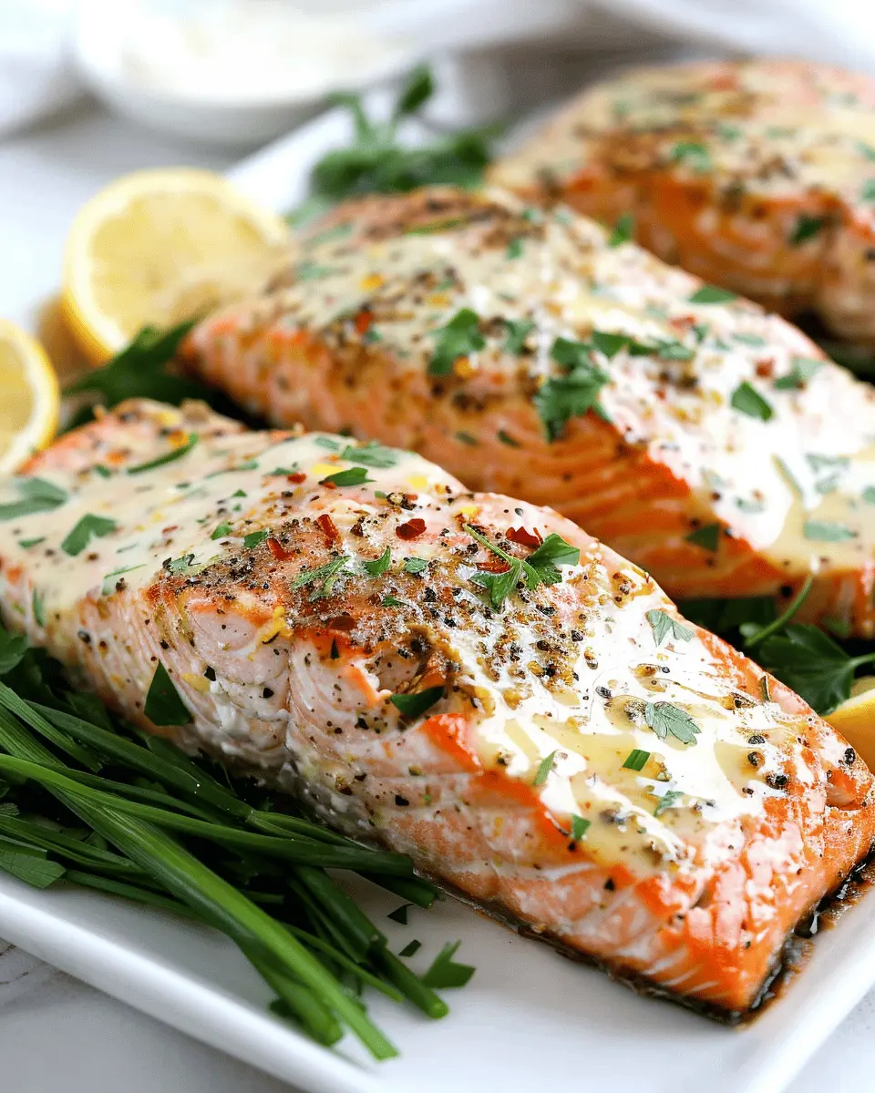 Stir everything together until it’s well mixed. You can also add a pinch of garlic powder or some chopped green onions to elevate the flavor. This sauce not only keeps the salmon moist while baking but also adds a creamy texture that complements the fish beautifully.
