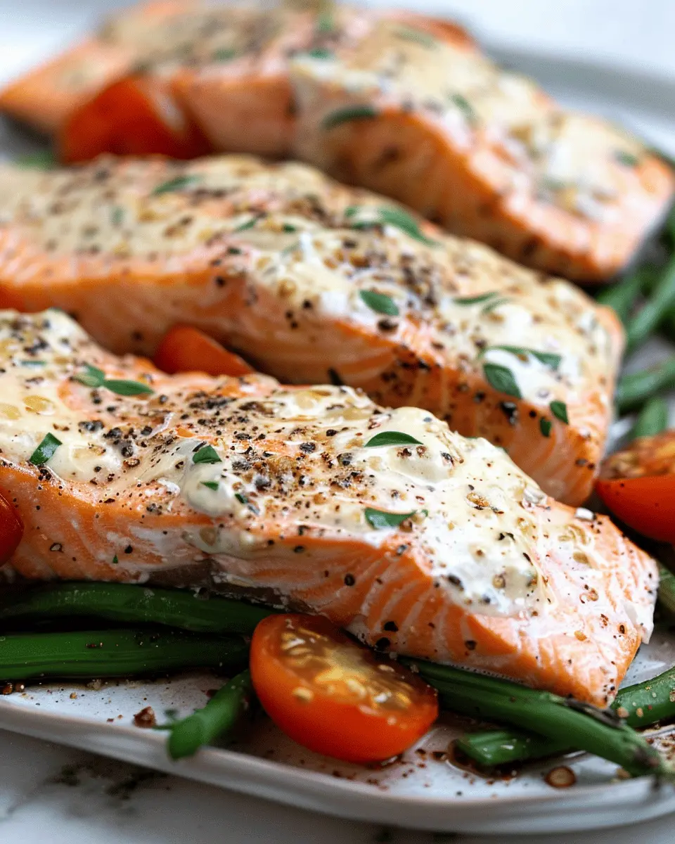A simple way to enhance the flavor profile of your easy sour cream baked salmon is by incorporating fresh herbs. Think about sprinkling in some dill, parsley, or chives. Dill is particularly delightful with salmon, offering a fresh, slightly tangy taste that complements the richness of the sour cream. Just chop up your herbs and mix them into the sour cream before you spread it over your fish. If you’re feeling adventurous, herbs like tarragon or basil can also create a vibrant twist. This not only adds flavor but also contributes a beautiful pop of color to your dish—making it as pleasing to the eyes as it is to the palate!