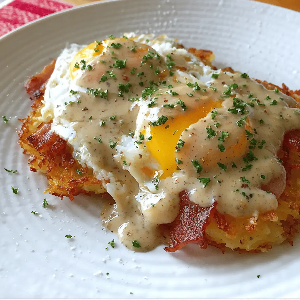 So gather your ingredients, channel your inner chef, and let’s dive into the delightful world of homemade egg topped hash browns with turkey bacon gravy! You’ll find both joy and nourishment in this delicious creation.
