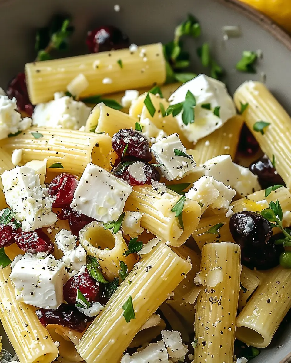 A delicious and refreshing pasta salad featuring feta cheese, cranberries, and a zesty lemon vinaigrette.