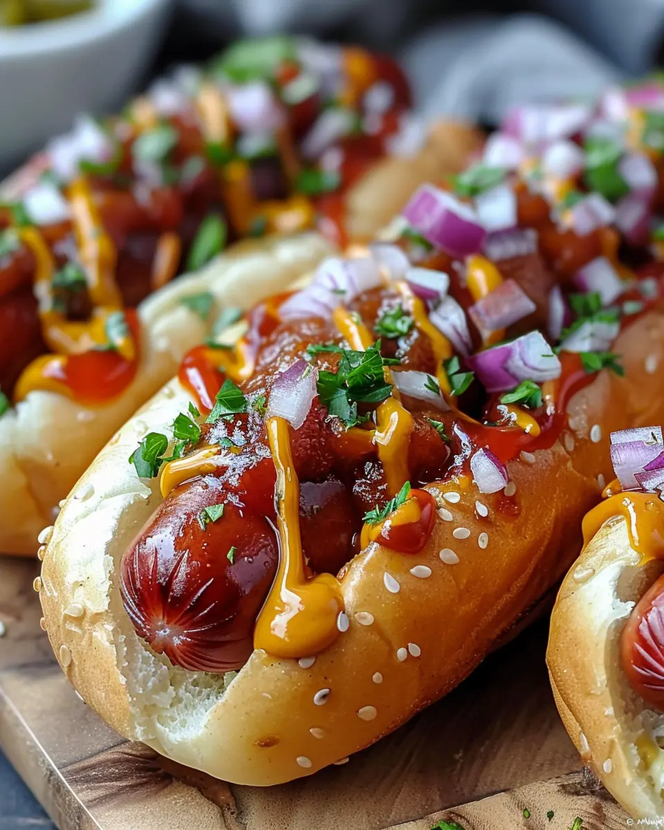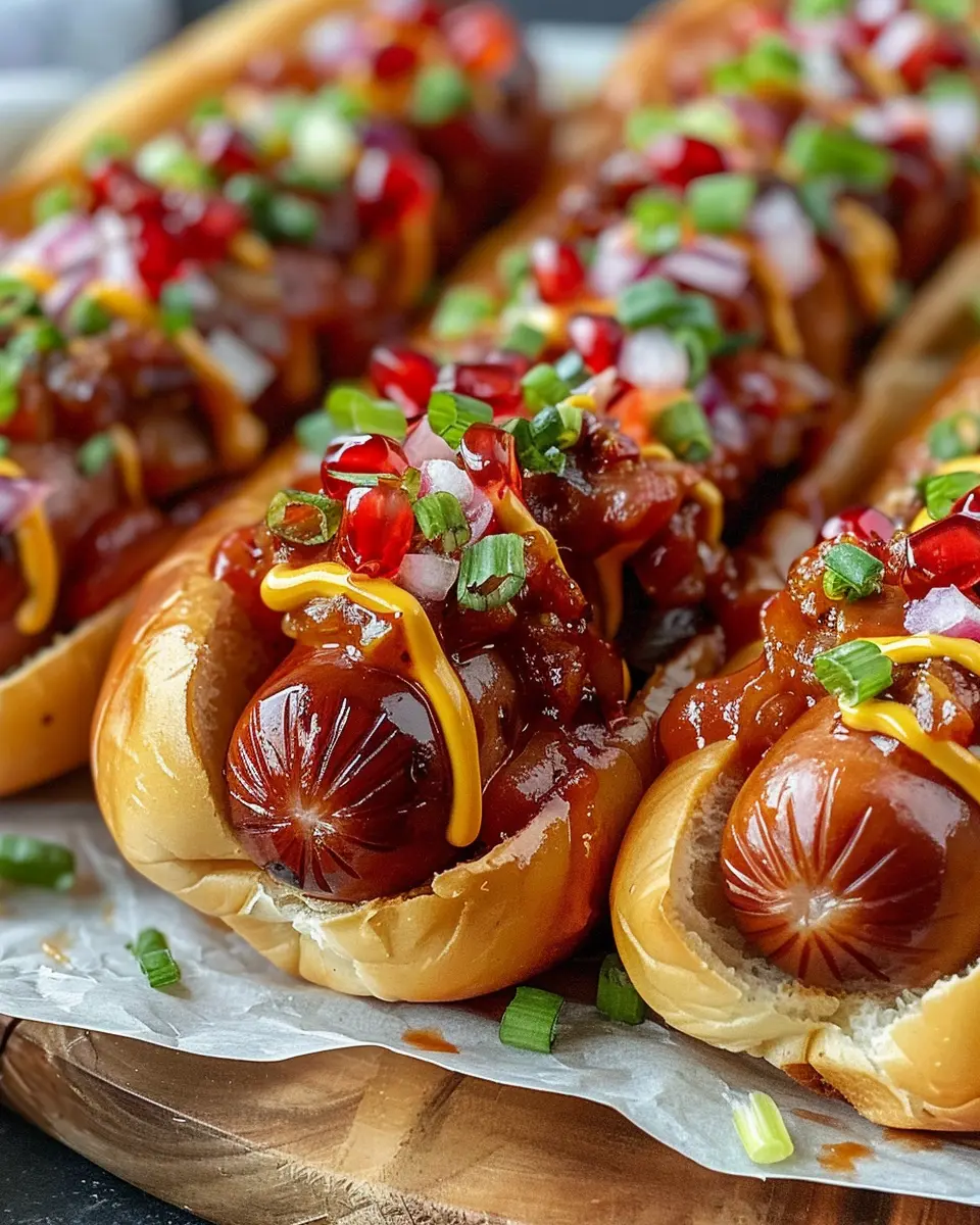 With everything ready, it’s time to assemble your Flavorful Firecracker Hot Dogs. Start with a toasted bun, then place in the grilled hot dog. Generously drizzle your firecracker sauce on top, followed by a sprinkle of your chosen toppings. Remember, a good hot dog is a well-dressed hot dog!