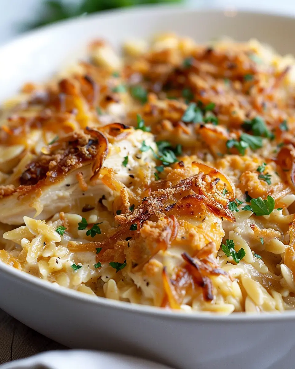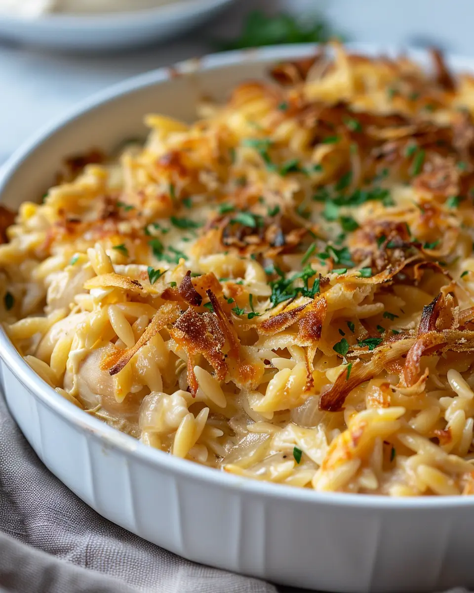 In conclusion, the French Onion Chicken Orzo Casserole is not just a dish; it’s a reliable companion for the modern professional. It embodies ease, comfort, and nutrition, making it a must-try for anyone looking to elevate their dining experience without extra hassle. Ready to dive into this delightful recipe? Let’s get started!