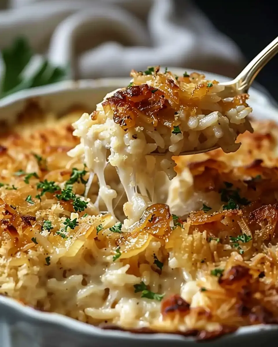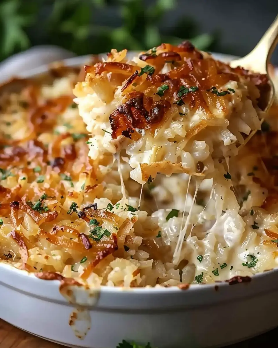 PrintFrench Onion Chicken Rice Bake: A Cozy Family Favorite Delight