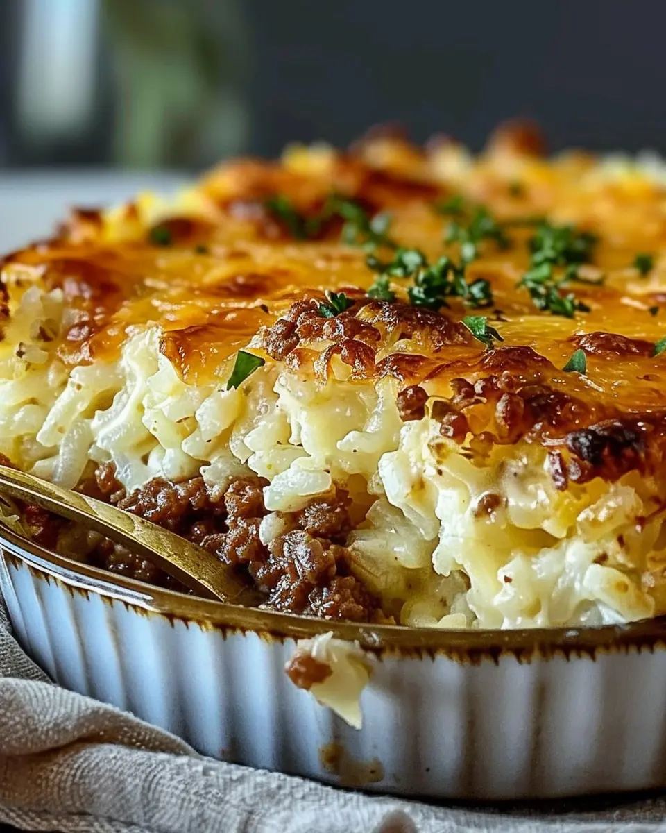 The French Onion Ground Beef and Rice Casserole is more than just a comforting meal; it’s a versatile dish that brings flavors together in the most delicious way. Perfect for busy weeknights, this casserole offers a hearty mix of savory beef, rich onions, and tender rice, making it a filling option that satisfies everyone’s palate.