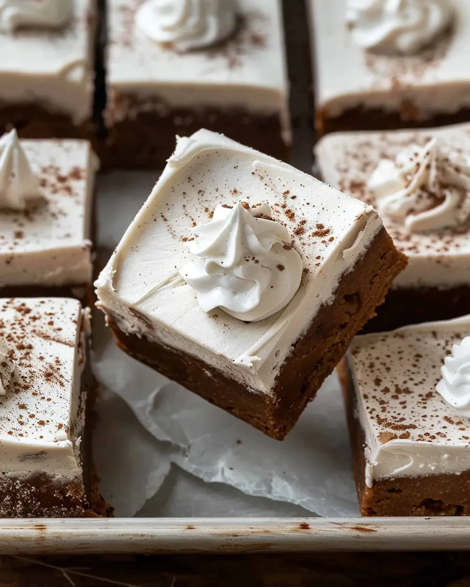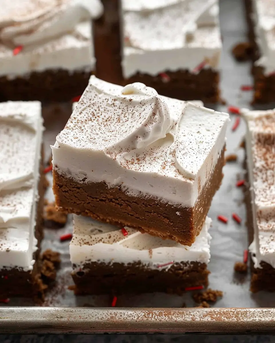 Indulge in the deliciousness of these frosted gingerbread brownies, perfect for festive gatherings.