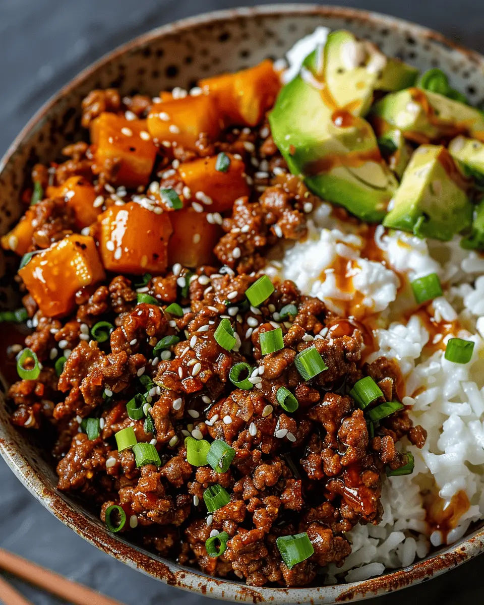 Keywords: Ground Beef, Hot Honey, Bowl, Sweet, Savory