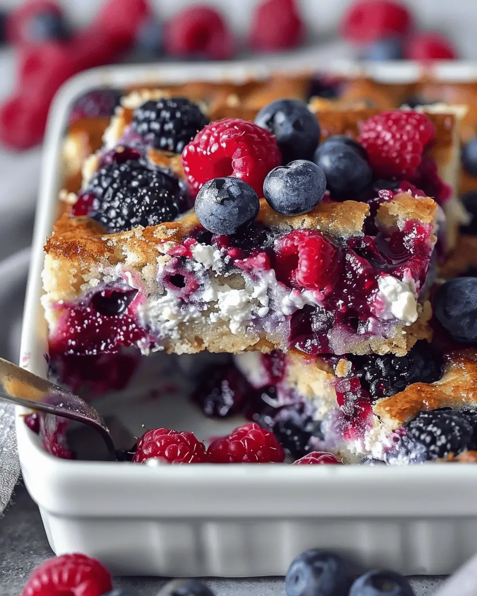 The beauty of the high protein triple berry bake is its versatility. After your initial serving, you can easily repurpose leftovers for a variety of meals throughout the week. Try reheating a slice and topping it with cottage cheese or almond yogurt for a hearty breakfast. It also makes a great snack when enjoyed with nut butter or even a sprinkle of granola for added crunch. Feeling creative? Crumble it over your morning smoothie bowl or mix it into oatmeal for a berry-infused twist. With so many ways to incorporate leftovers, you’ll never tire of this delicious bake!