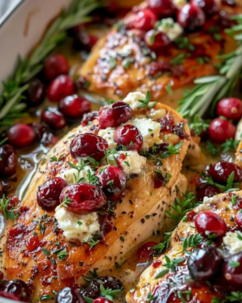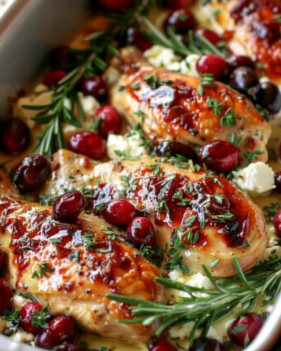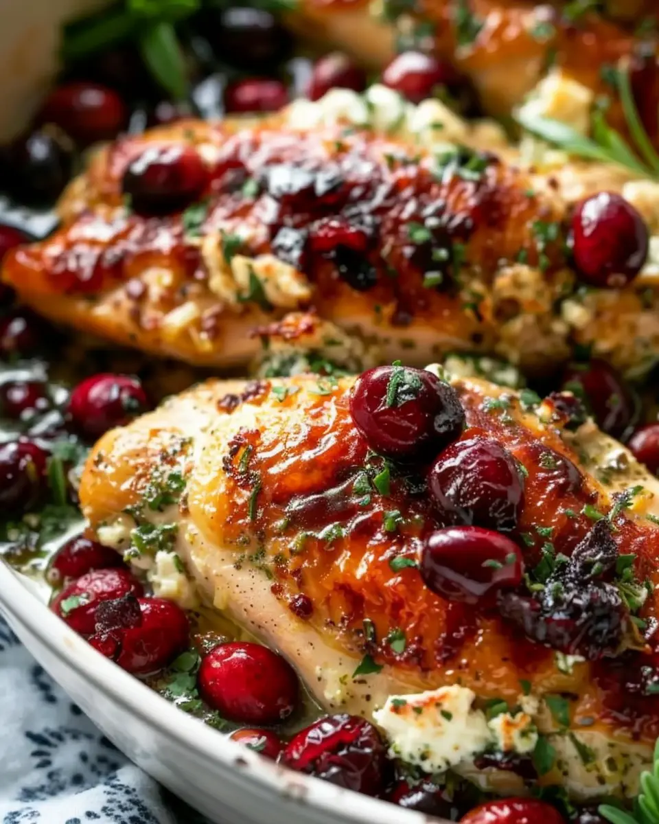 Once you have everything ready, it’s time to bring it all together. Preheat your oven to 375°F (190°C). In a baking dish, lay down the seared chicken breasts. Then, generously spoon the cranberry-honey mixture over each piece.