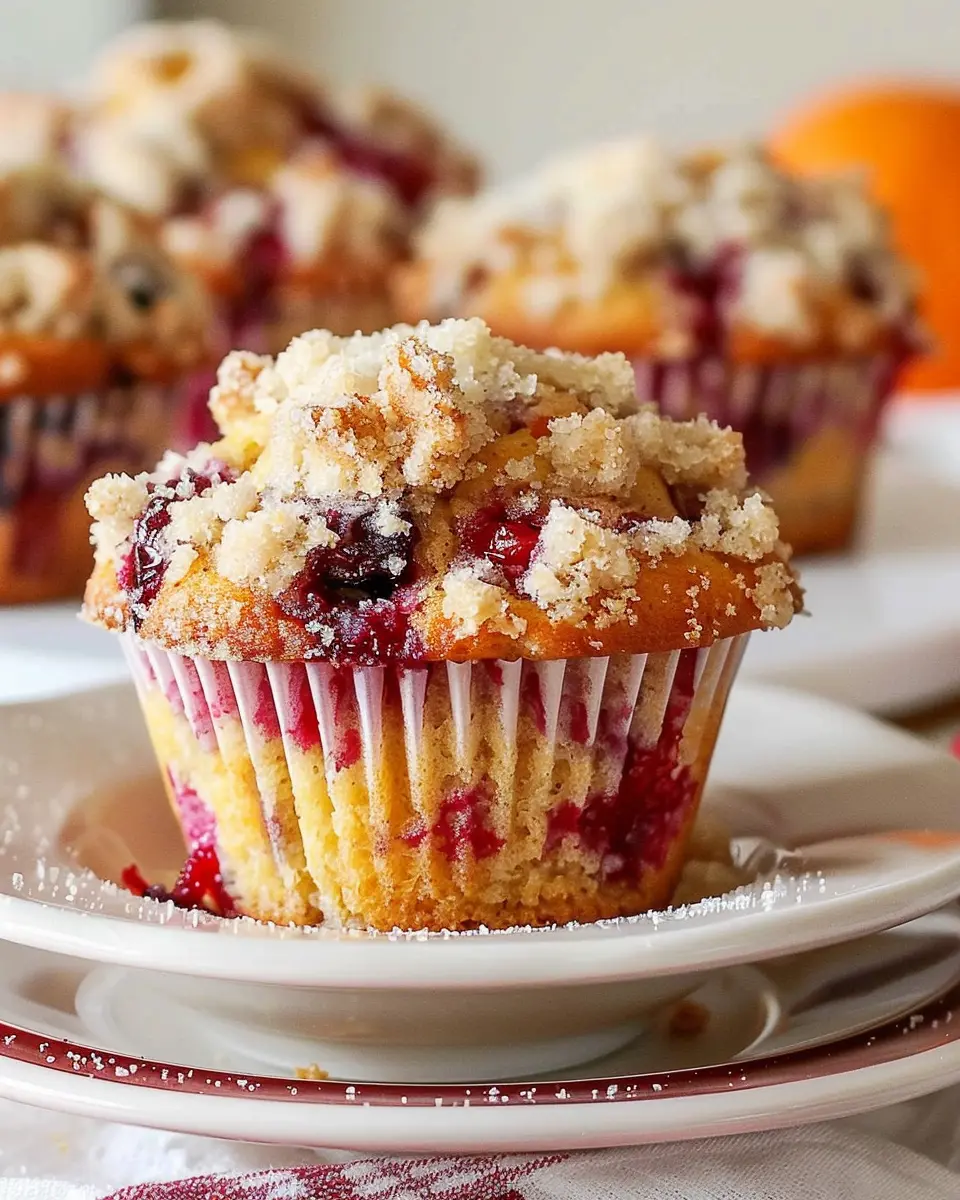These muffins are a delightful combination of tart cranberries and sweet orange, topped with a crunchy crumb topping.
