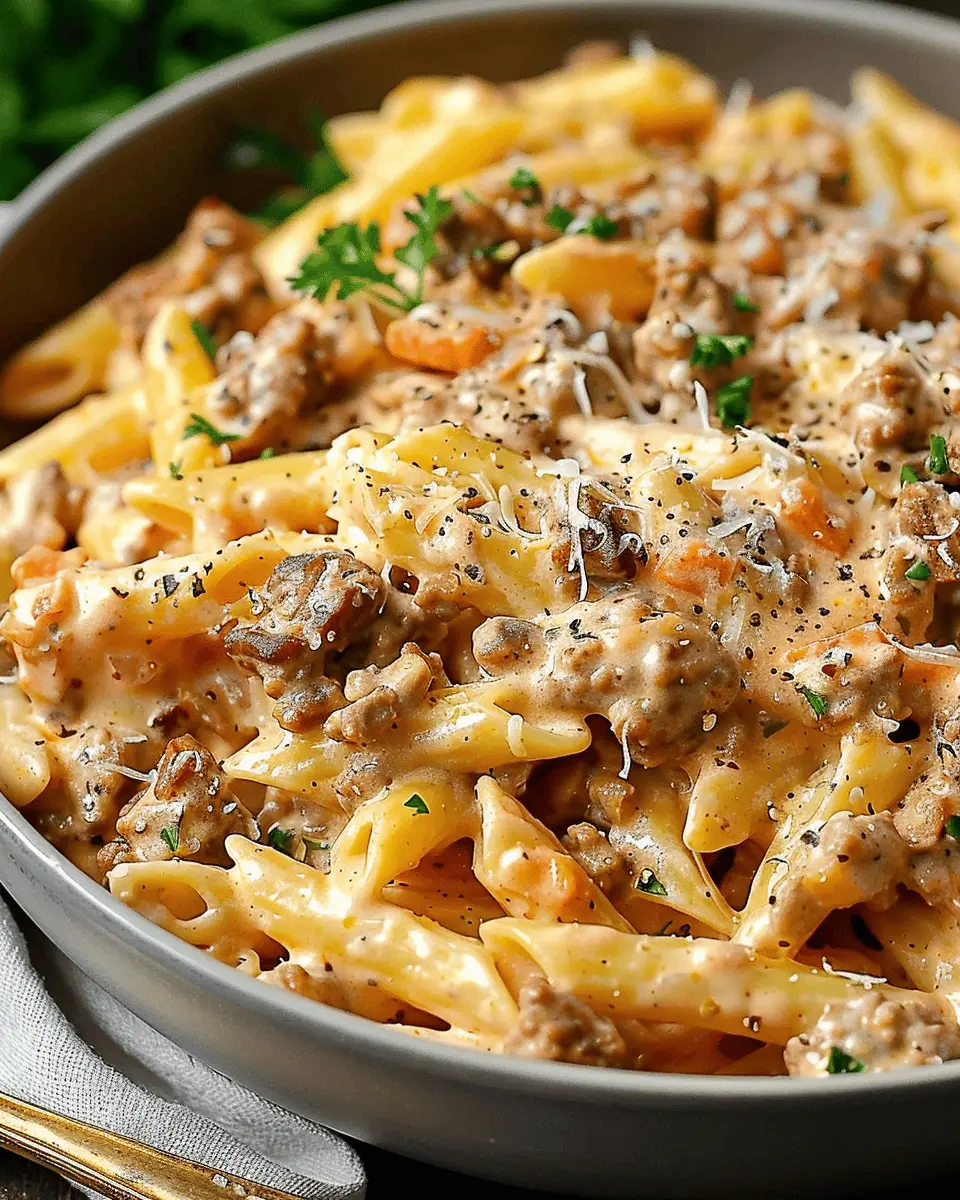 This Irresistible Creamy Beef Pasta is the perfect dish for cozy nights in, combining comforting flavors and a creamy texture that will satisfy any appetite.