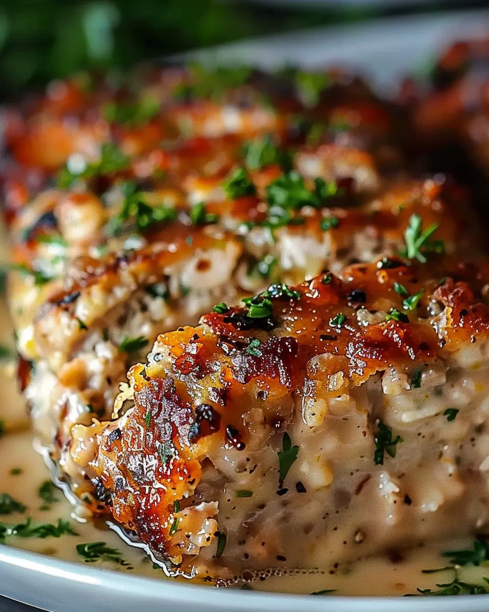 PrintIrresistible Garlic Parmesan Chicken Meatloaf Recipe for Easy Comfort Cooking