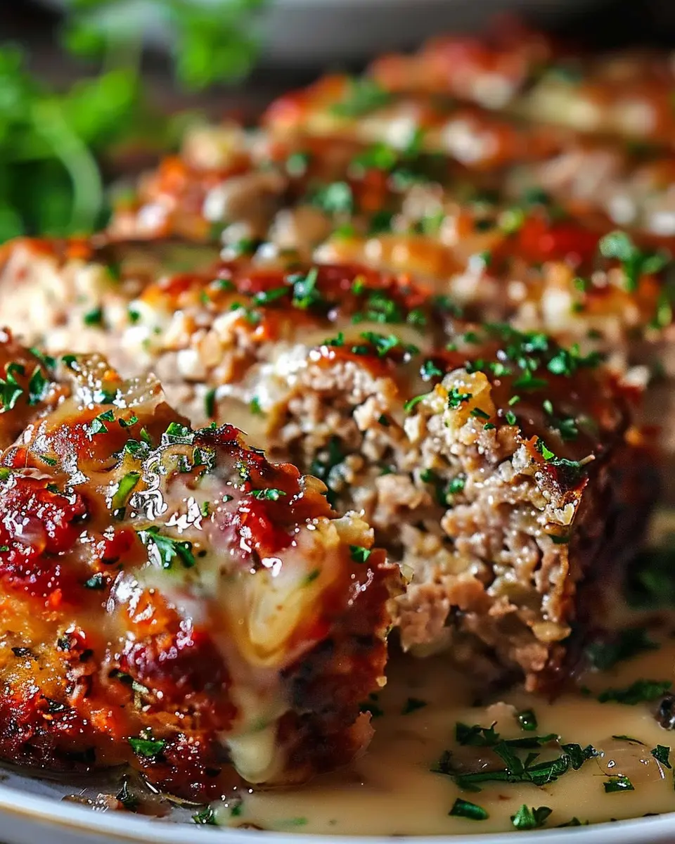 A delicious meatloaf recipe featuring garlic and parmesan cheese for a comforting meal.