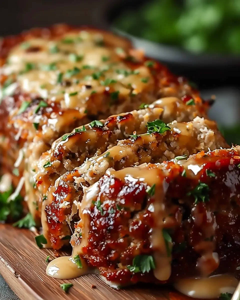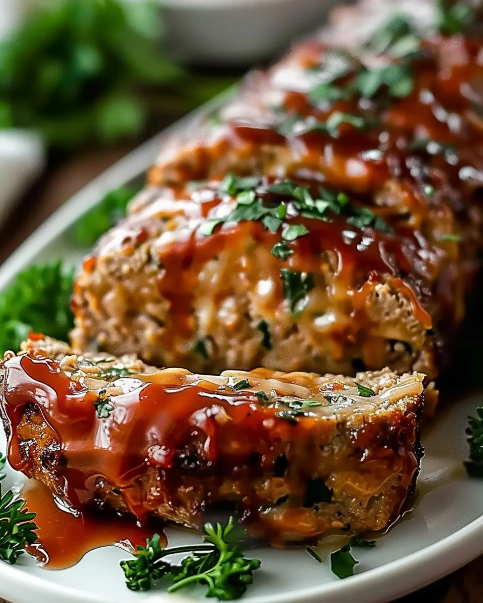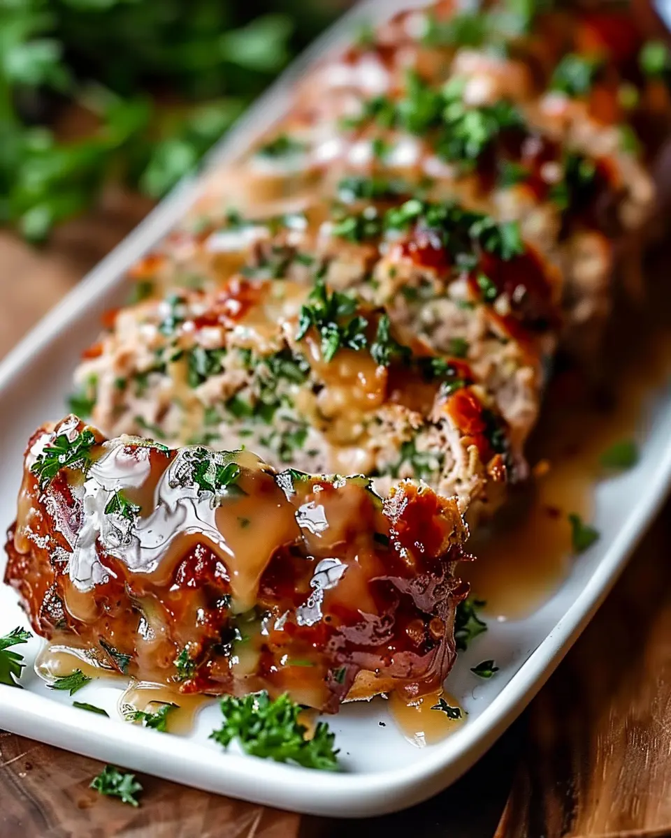 Once your Juicy Garlic Parmesan Chicken Meatloaf is beautifully browned and glazed, take it out of the oven and let it rest for about 10 minutes. This step is crucial; resting allows the juices to redistribute, making each slice tender and juicy.