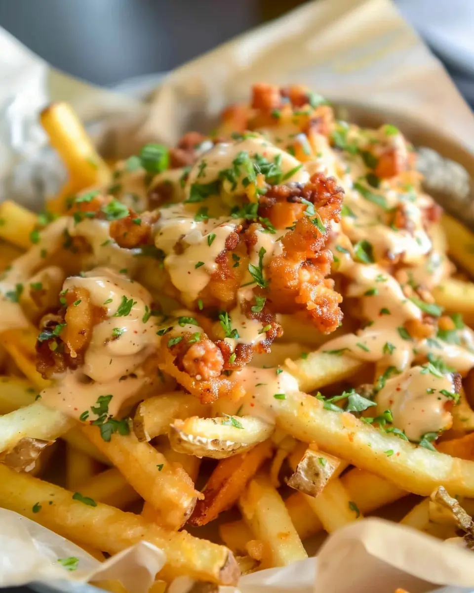 Once you’re prepped, the cooking part will take around 25–30 minutes. This includes frying or baking your fries until they’re crispy and golden, plus allowing time for other ingredients to mingle together and develop their rich flavors.