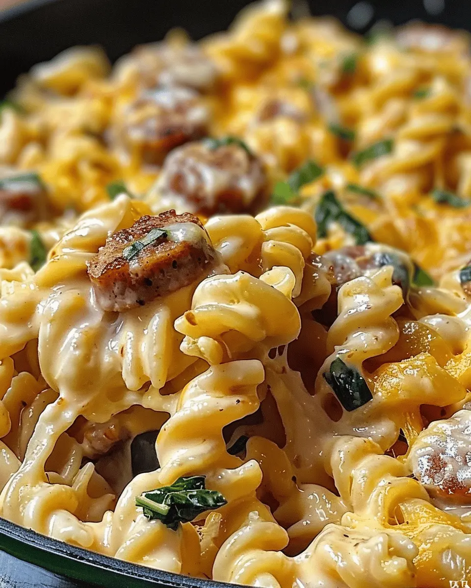 If you’re a fan of heat, why not turn your one-pan white cheddar ranch sausage magic pasta into a spicy sensation? By adding jalapeños, you can easily crank up the flavor. Simply sauté chopped jalapeños alongside your sausage for a few minutes until they’re tender. Not only do they bring a delightful kick, but they also perfectly complement the creaminess of the white cheddar sauce. For an extra flavor boost, consider adding a splash of hot sauce or even some diced green chilies. This spicy variation is ideal for those cozy nights when you want something hearty yet with a bit of zing.