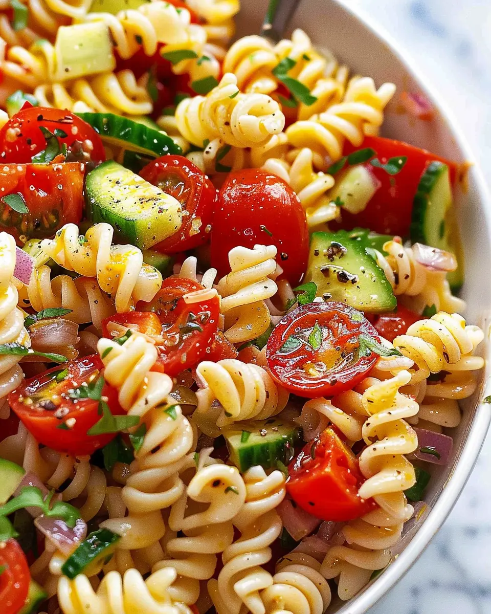 For the dressing, olive oil and lemon juice create a refreshing base. You can also experiment with balsamic vinegar for a tangy twist. Don’t forget to let your pasta salad chill in the refrigerator for at least an hour before serving—this time allows the flavors to meld beautifully.