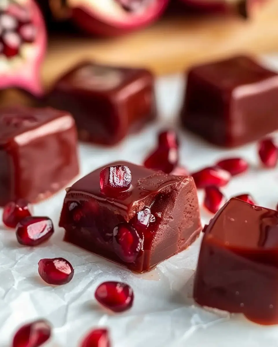 If you’re a chocolate lover, this variation is a must-try! Dipping your pomegranate caramels in rich, melted chocolate creates a luxurious twist.