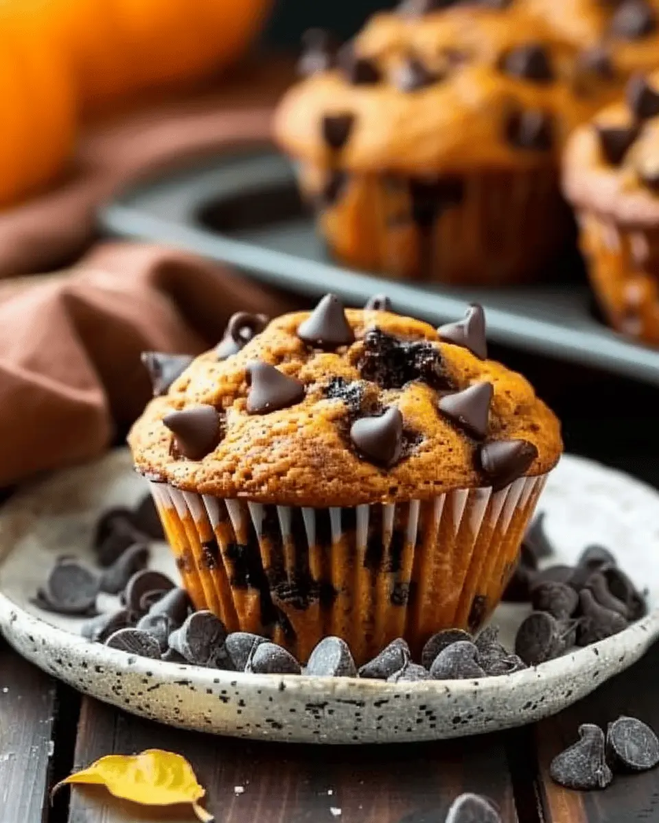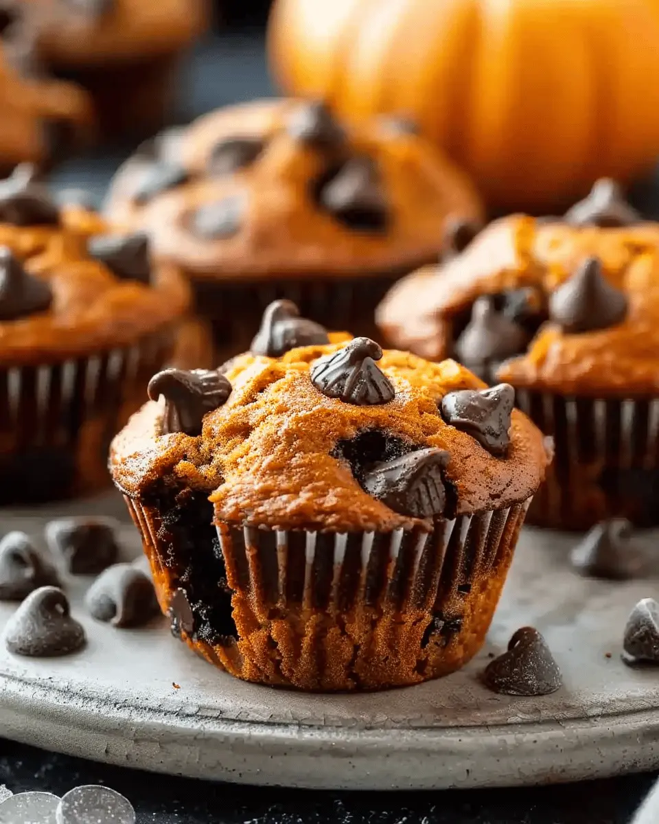 These ingredients come together to create a moist, flavorful muffin that perfectly balances the richness of pumpkin with the sweetness of chocolate.