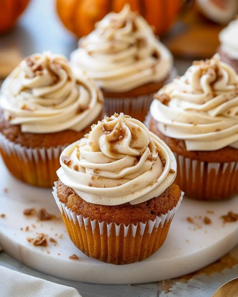 Keywords: pumpkin cupcakes, cream cheese frosting, fall desserts