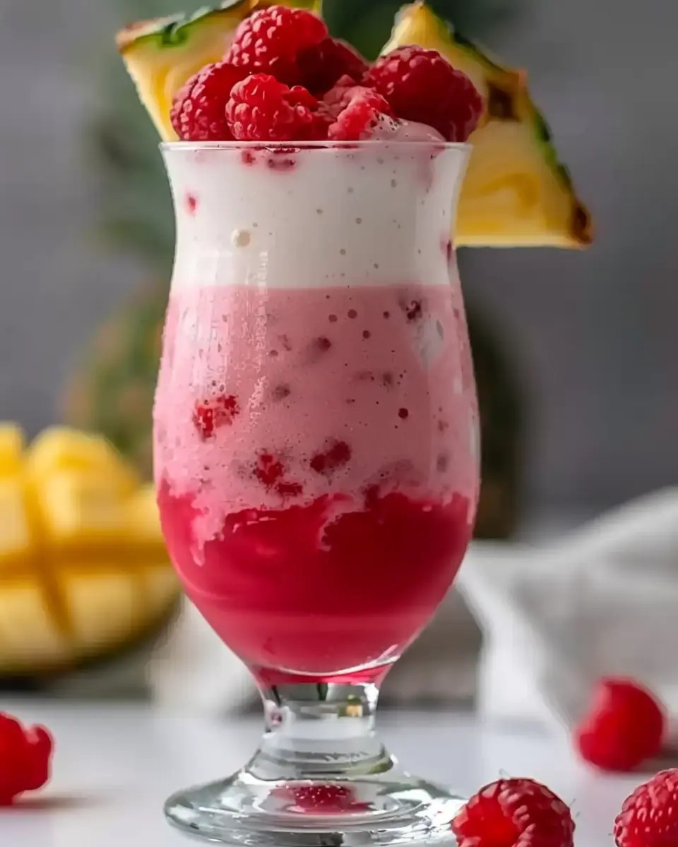 Keywords: Raspberry Colada, refreshing drink, tropical cocktail, summer drink