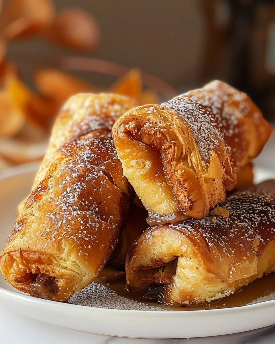 Finally, the moment we’ve all been waiting for—serve your Roulés façon pain perdu hot from the pan!