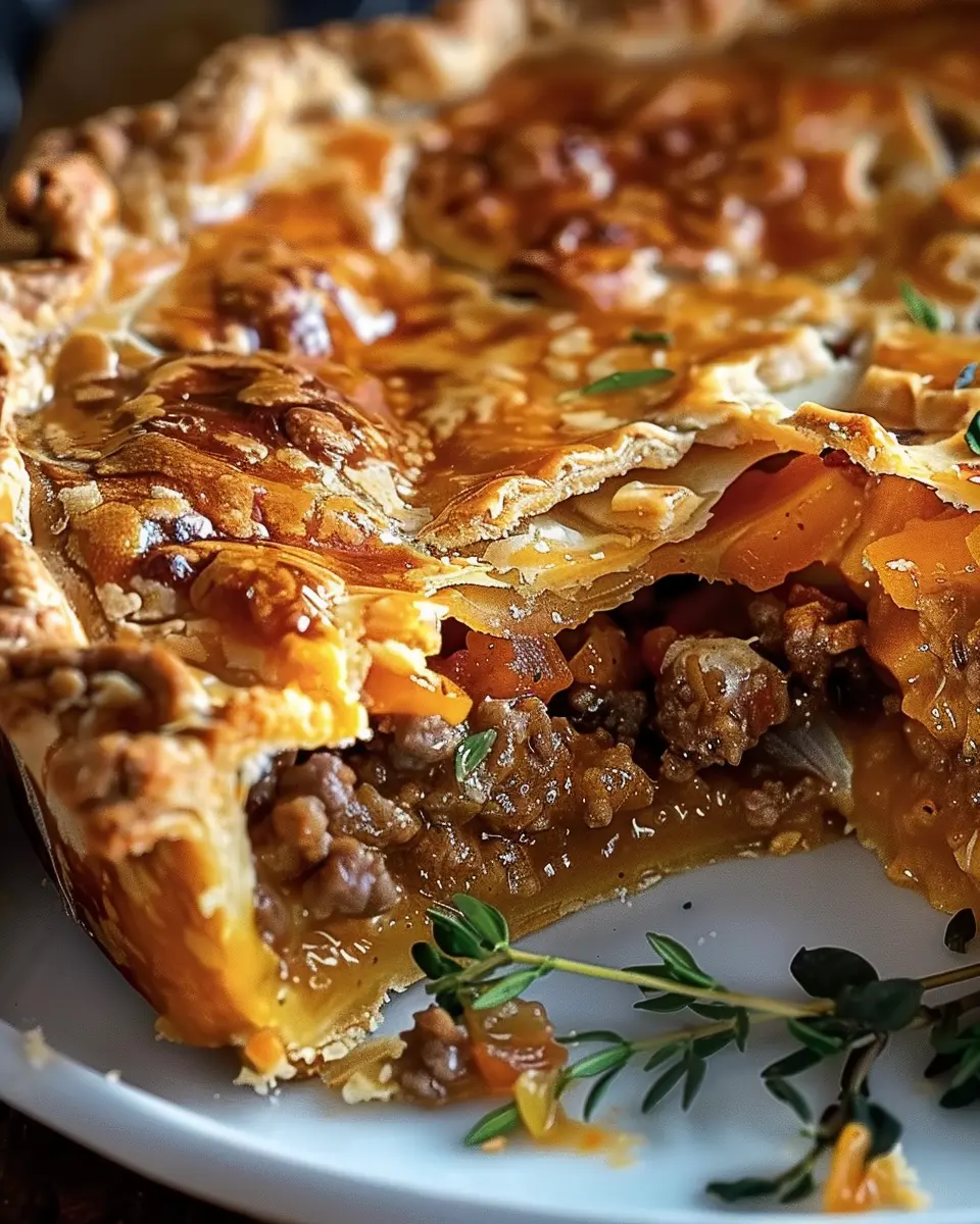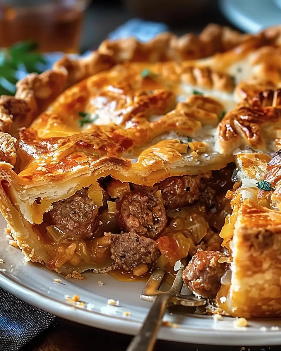 This savory sausage pie is the perfect comfort dish for any occasion, combining rich flavors and a flaky crust.