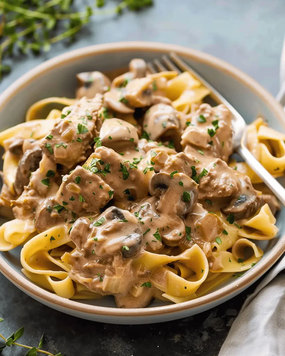 Presentation can elevate your slow cooker beef stroganoff from everyday to extraordinary. Serve it in a shallow bowl for a rustic feel or on a stylish plate to impress guests. Garnish the beef stroganoff with freshly chopped parsley or chives for a pop of color.