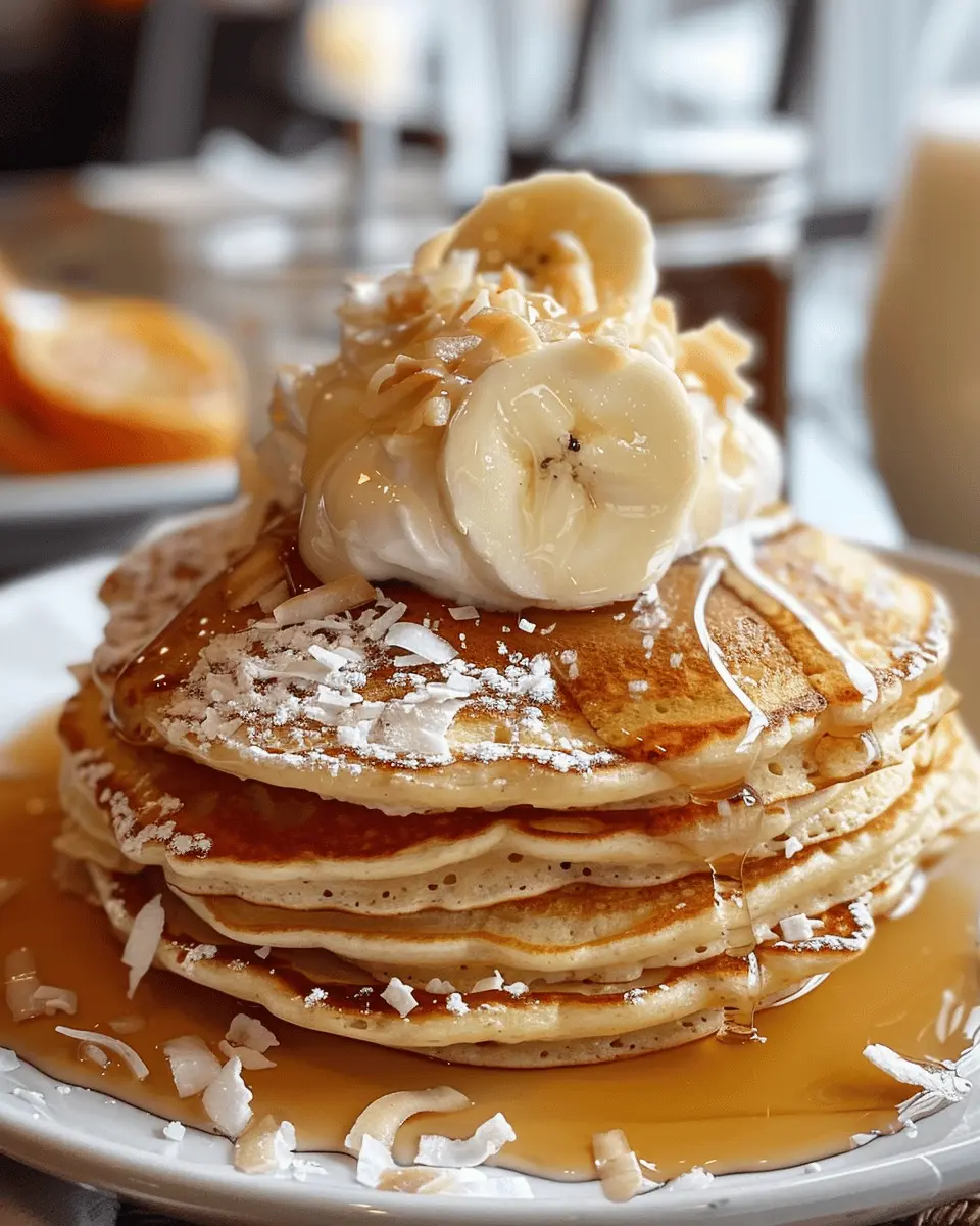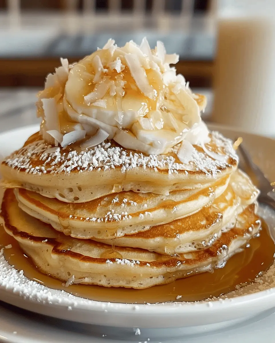 These Sweet Coconut Cream Pancakes are fluffy, indulgent, and easy to make at home. Perfect for breakfast or a special brunch!