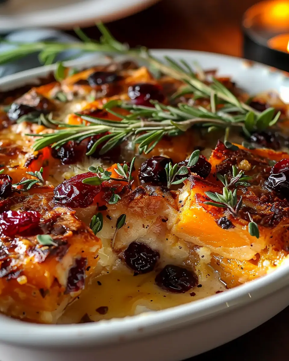 If you’re looking to elevate your sweet potato and cranberry gratin further, consider adding a variety of nuts and spices. Think about the delightful crunch of pecans or walnuts, which not only add texture but bring a unique nuttiness that complements the sweetness of the potatoes and tartness of cranberries.