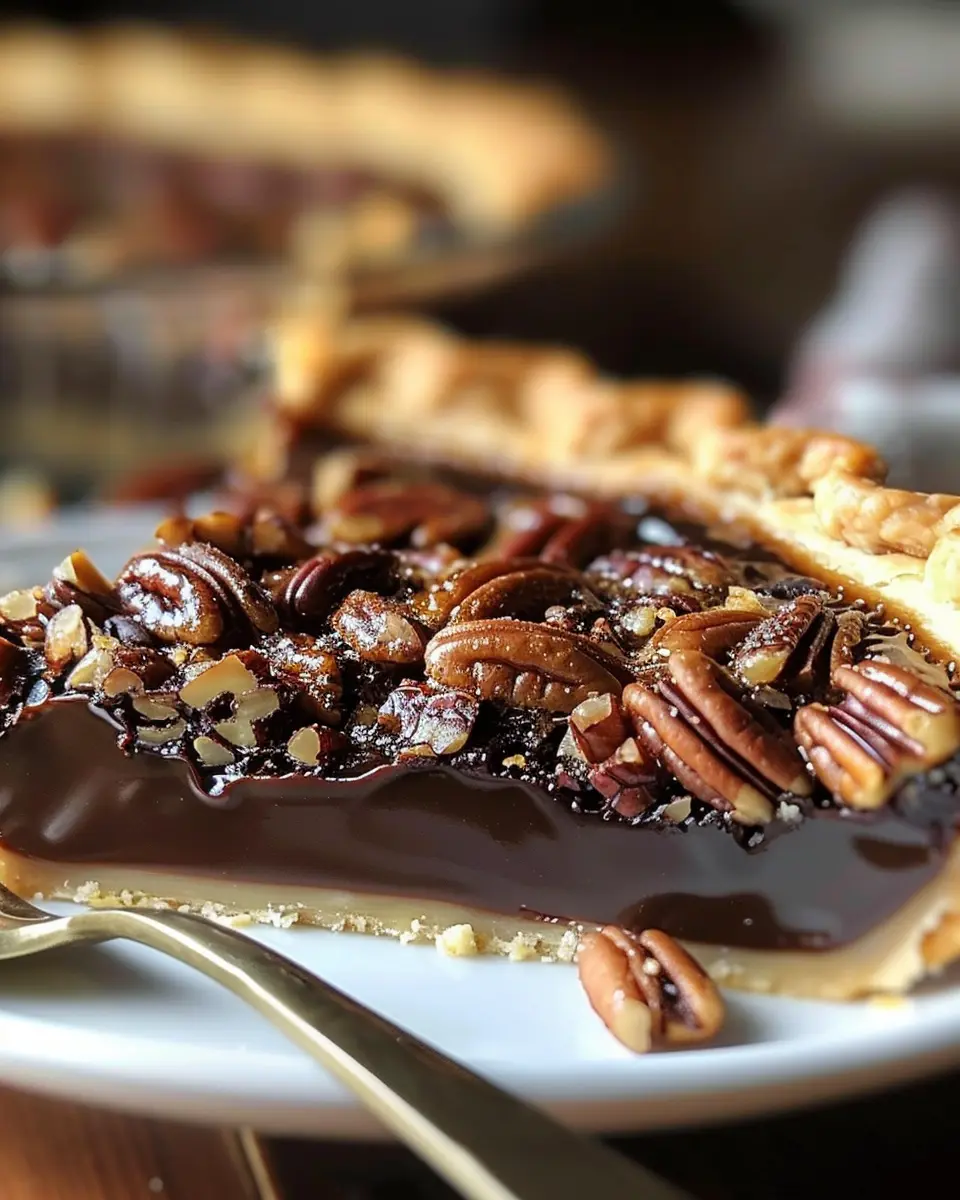 This Texas Chocolate Pecan Pie is the ultimate dessert, combining rich chocolate with crunchy pecans in a flaky crust.