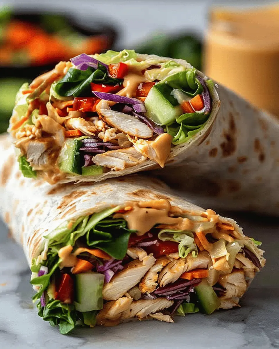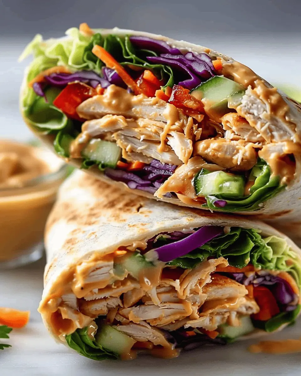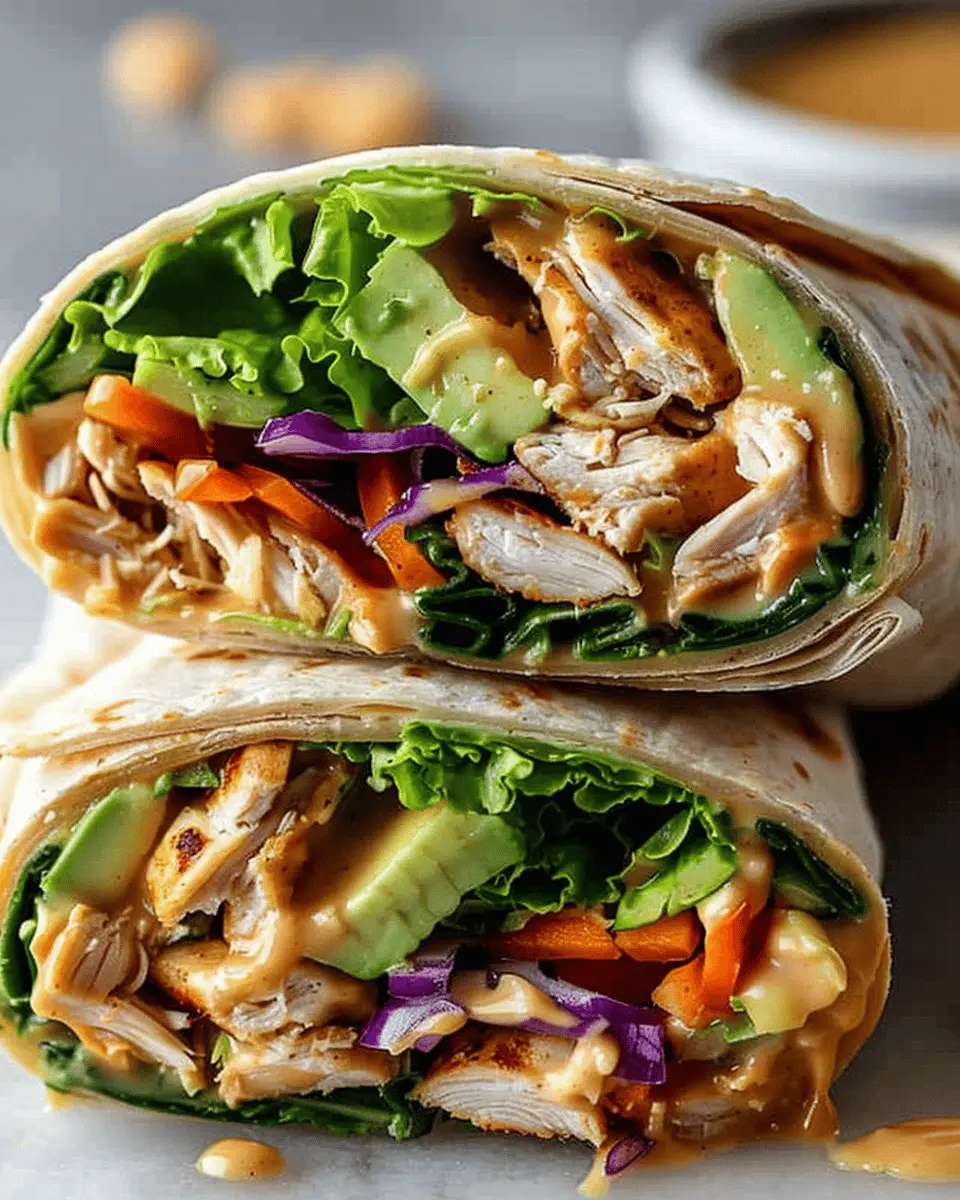 Delicious Thai Peanut Chicken Wraps that are easy to prepare and full of flavor.
