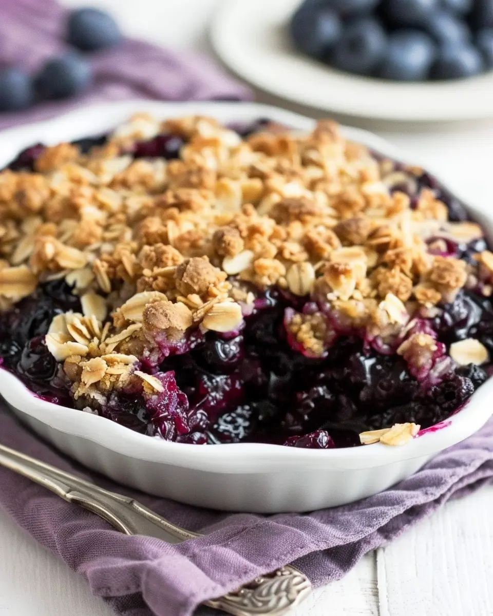 Who says blueberries are the only star in the crumble game? Feel free to get creative! Mix in some ripe peaches, tart cherries, or even diced apples for an extra burst of flavor. Strawberries and raspberries can also complement the blueberries wonderfully, making it a mixed berry celebration! Not only does this add variety, but it also introduces different vitamins and minerals, turning your dessert into a fruity powerhouse.