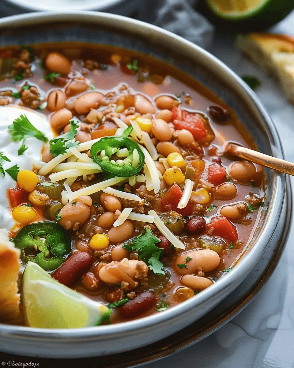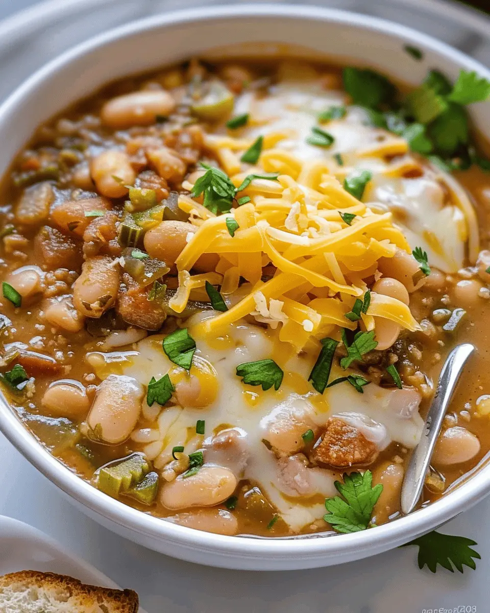 PrintWhite Bean Chili: A Comforting Twist with Turkey Bacon and Chicken Ham