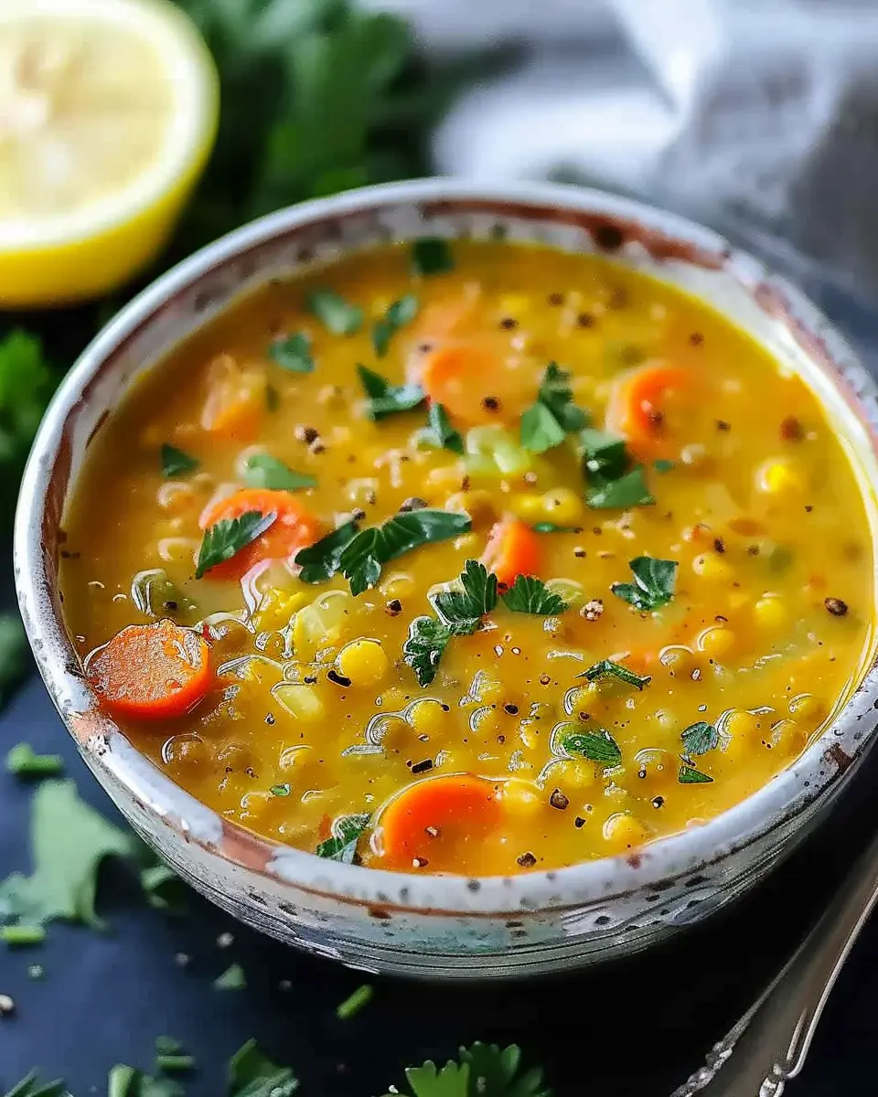 Keywords: Lemon Lentil Soup, Healthy Soup, Vegan Soup